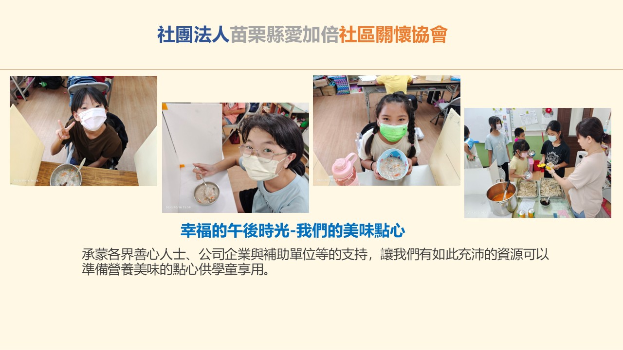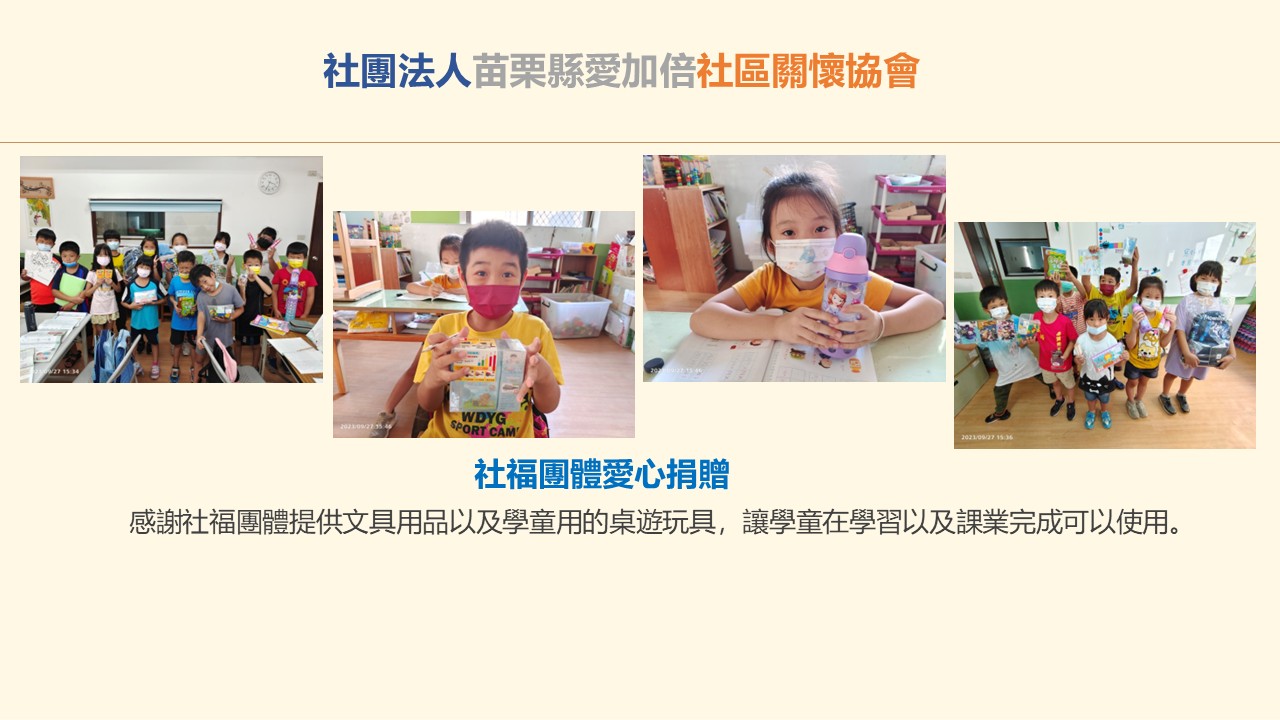 您的捐款幫助「社團法人苗栗縣愛加倍社區關懷協會」 - 2023年10月定期定額款項使用報告