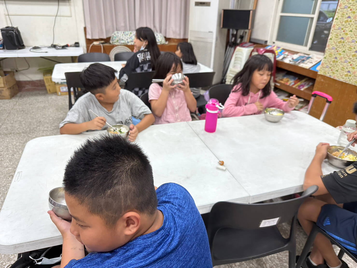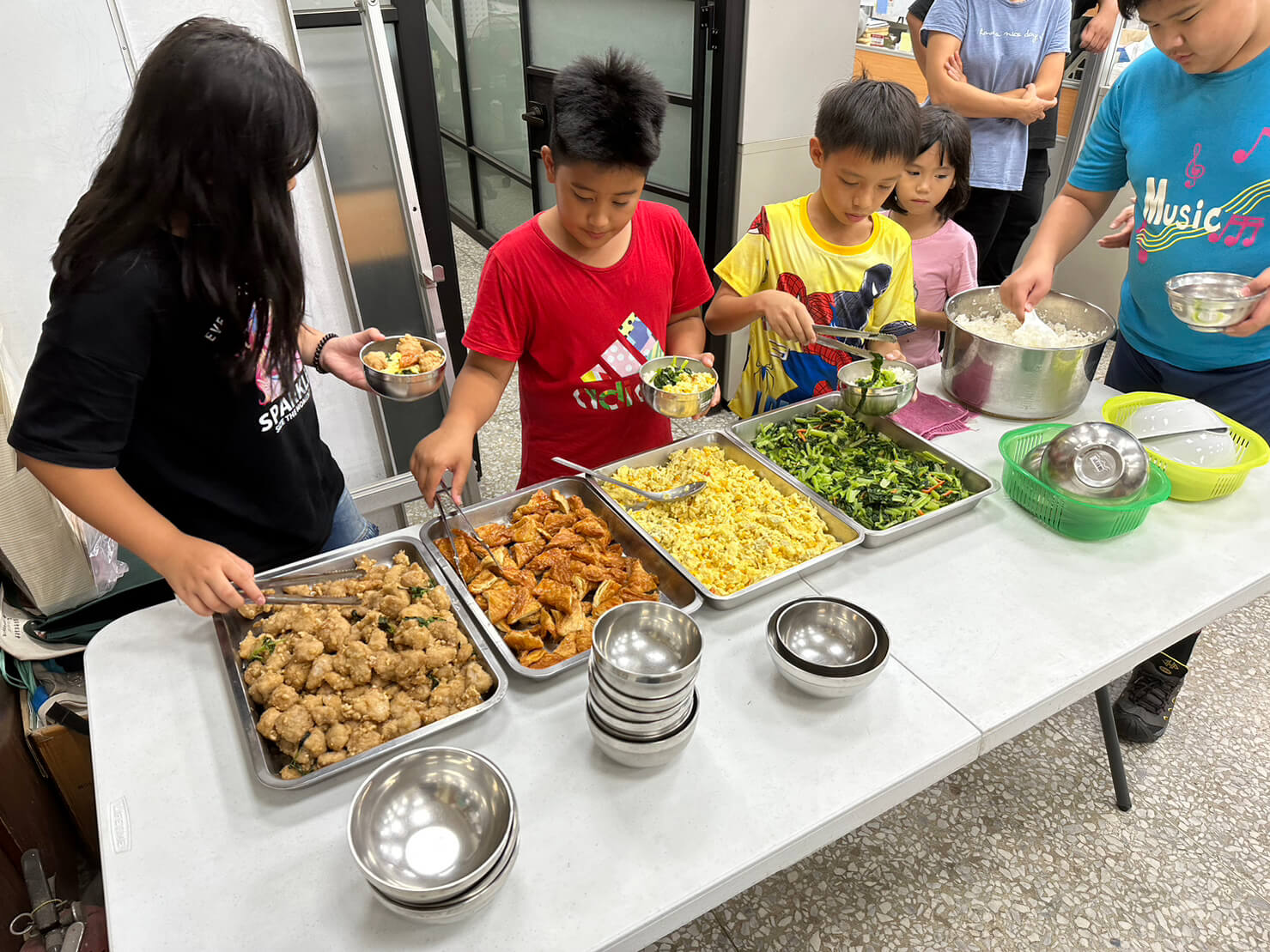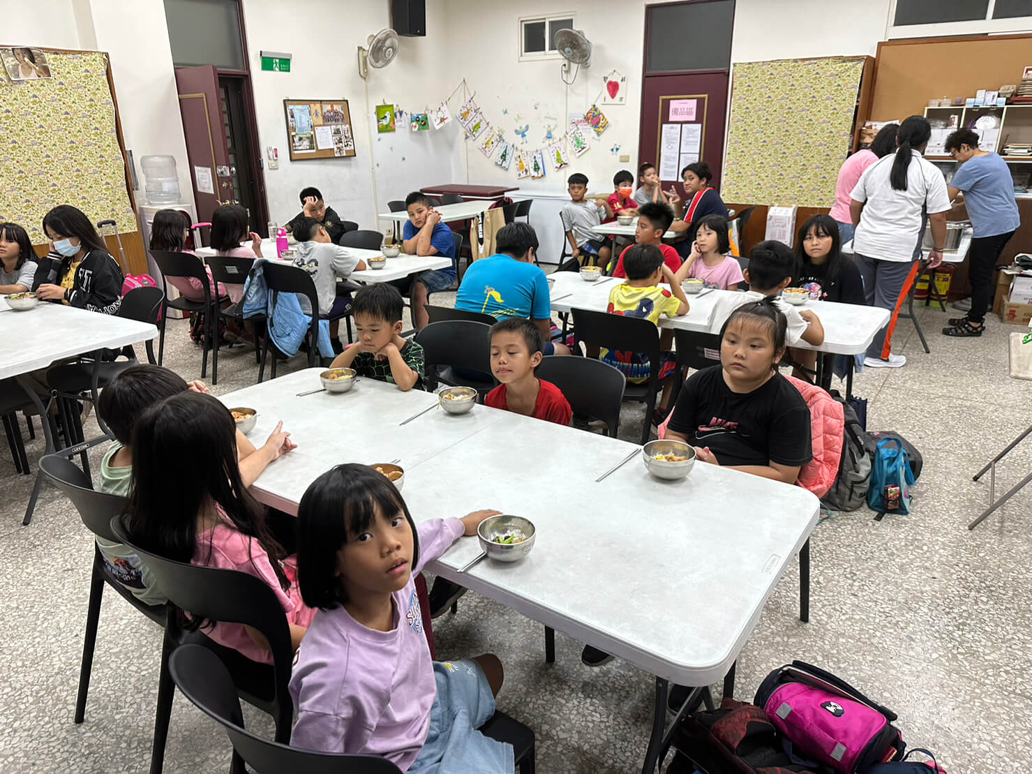 提供晚餐、一同陪伴孩子們用餐。