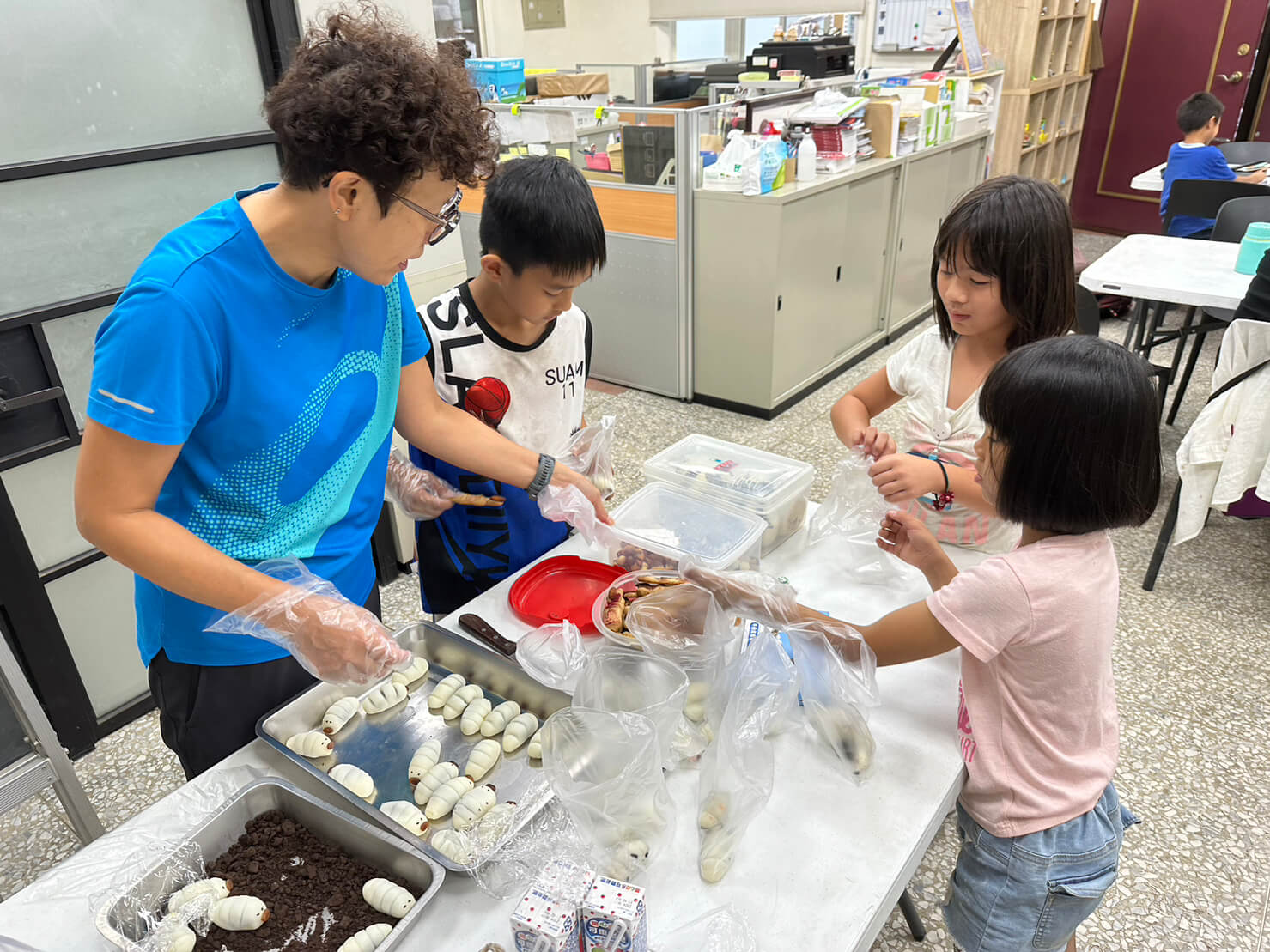 課餘時間老師帶領孩童製作點心,與大家一起分享同樂~