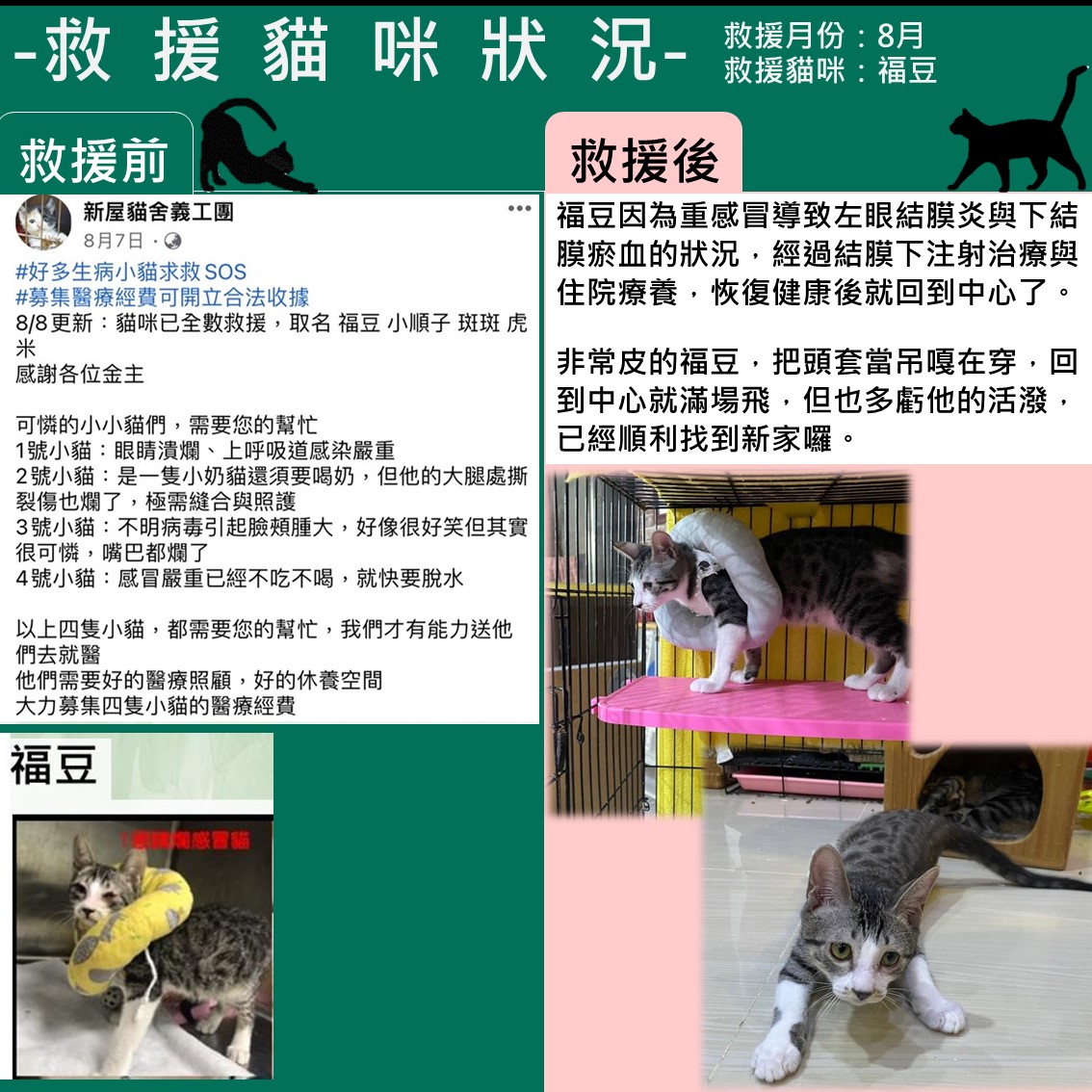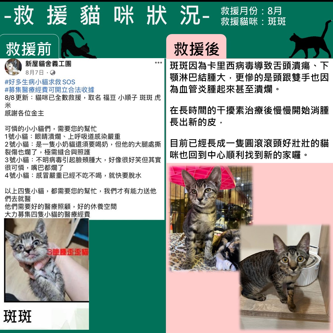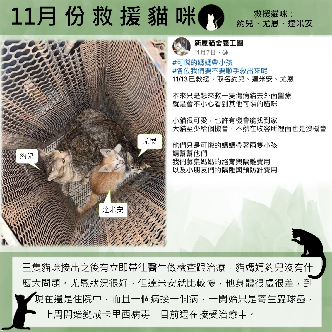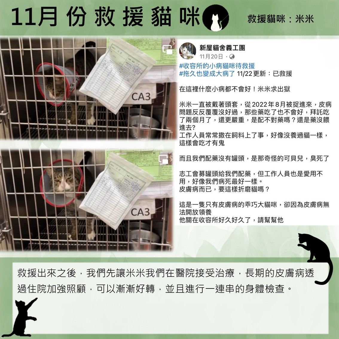 ◆本送養中心於112年11月份救援了47隻貓咪,送出了66隻貓咪,我們會持續努力幫助貓咪,除了能幫多一些機會貓咪找到家,更希望能將領養代替購買及友善貓咪的照護方式傳達給更多人。