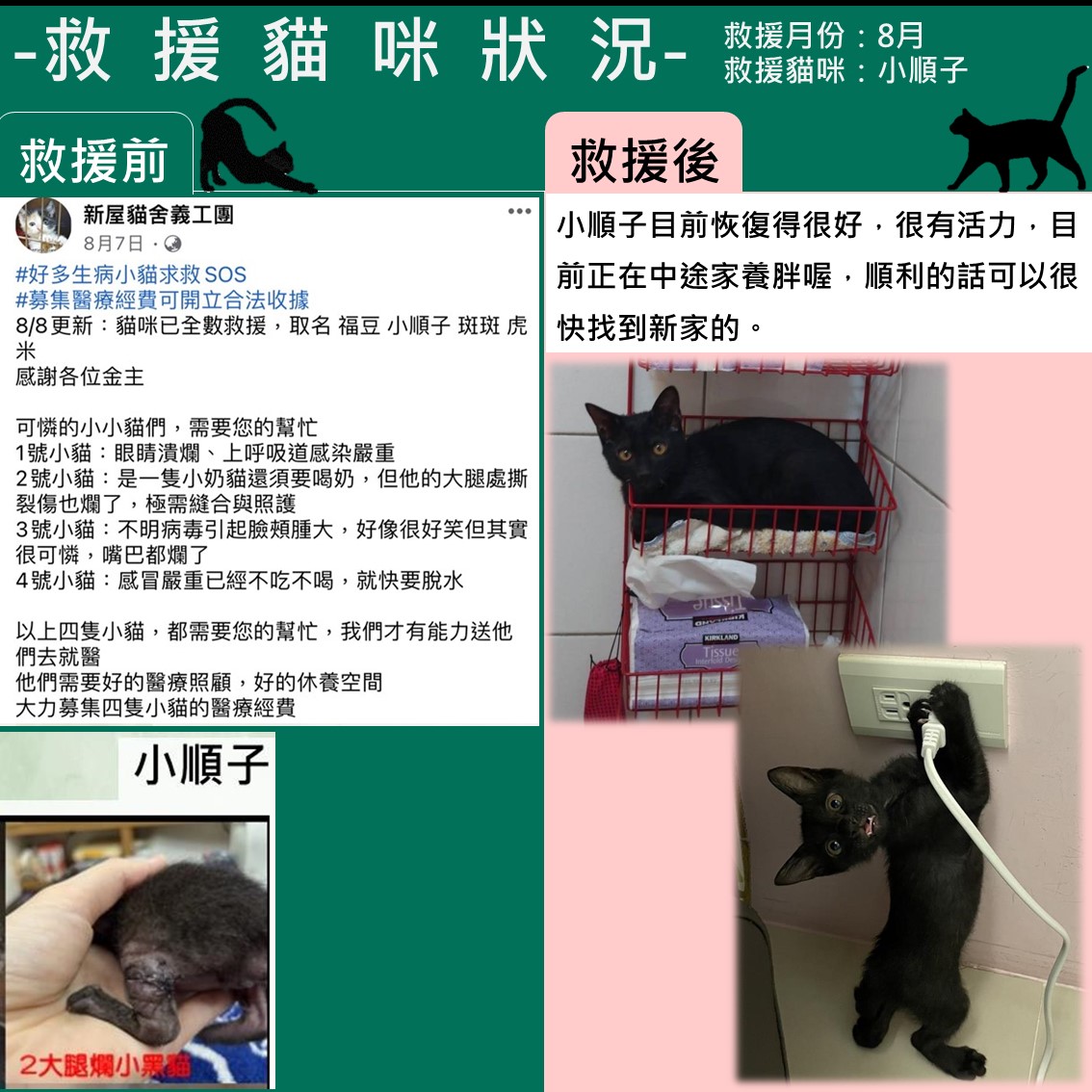 | 剩餘金額預計使用項目 | 1、醫療及藥品費 2、飼料費 3、清潔用品 4、修繕費用 5、貓咪用品 6、火化費 7、郵資 8、文具費用......等 |