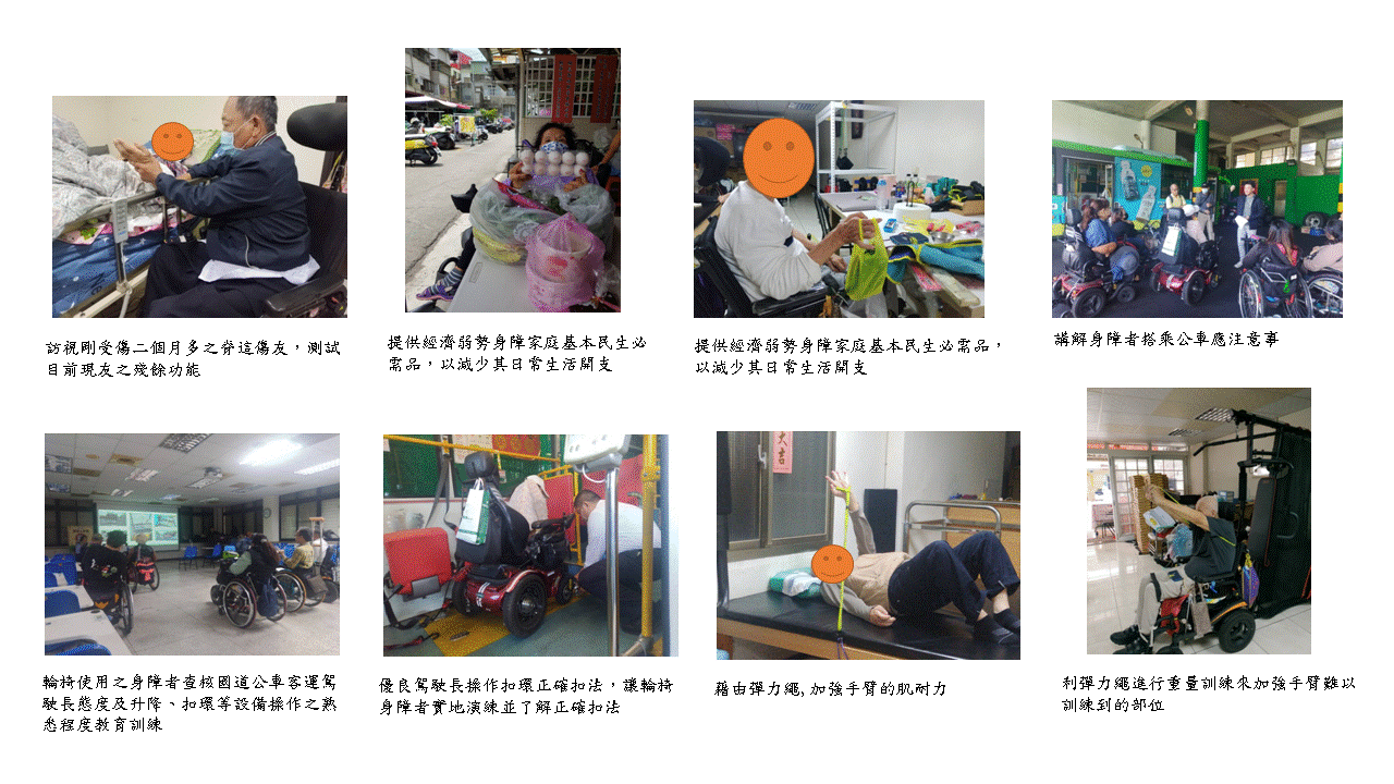 傷友除生活重建訓練和復健之外,在未來生活、家中環境、醫療照顧以及心理上要重新適應傷後的生活,都是一條漫漫長路。而協會的也藉由復健師及同儕經驗來協助需要復健的傷友,減少自我摸索過程中錯誤嘗試,並能夠協助傷友接納自我、調適心理。將來可以學習自立生活,重新回歸家庭及工作職場。