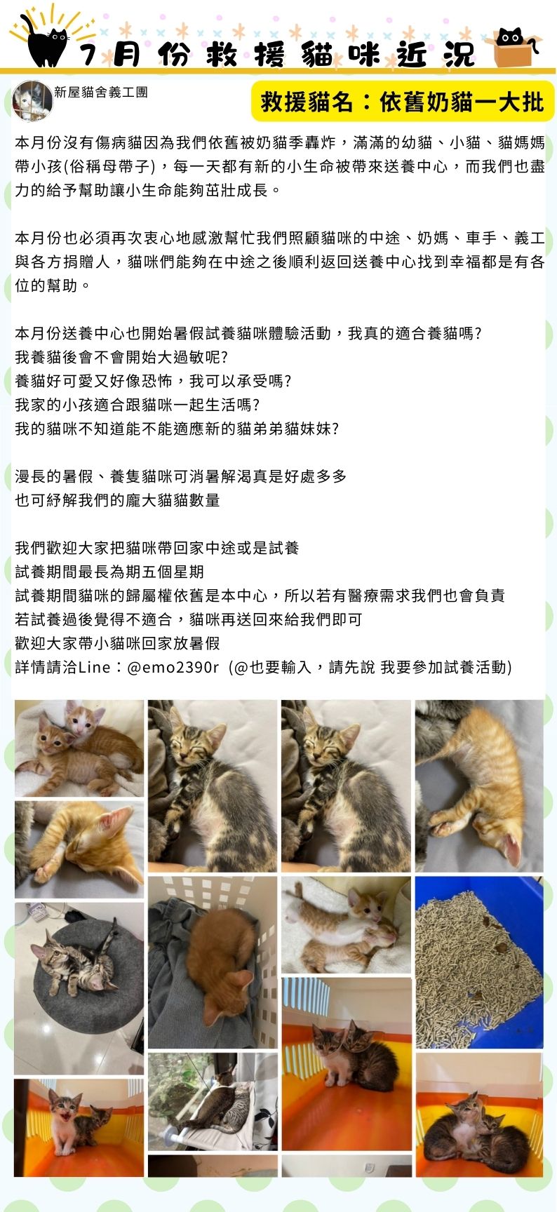 送養大小貓咪數百隻、周六日開放參觀