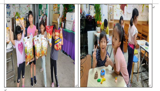 暑期到來,有較多的小朋友來參加課照班,每天的時間也較長。為了因應這樣的情形,在課程上也做了較大的調整,除了原本的課業輔導外,另外增加影片欣賞教學、手作課程、戶外運動、聖歌教學、校外教學、小團體課程等等活動,提供小朋友全人式的教學。一方面豐富課程內容,也滿足小朋友的身心需求,雖然工作人員都很累,但是看到小朋友歡樂的笑容,所有的辛苦也都化為喜悅了。