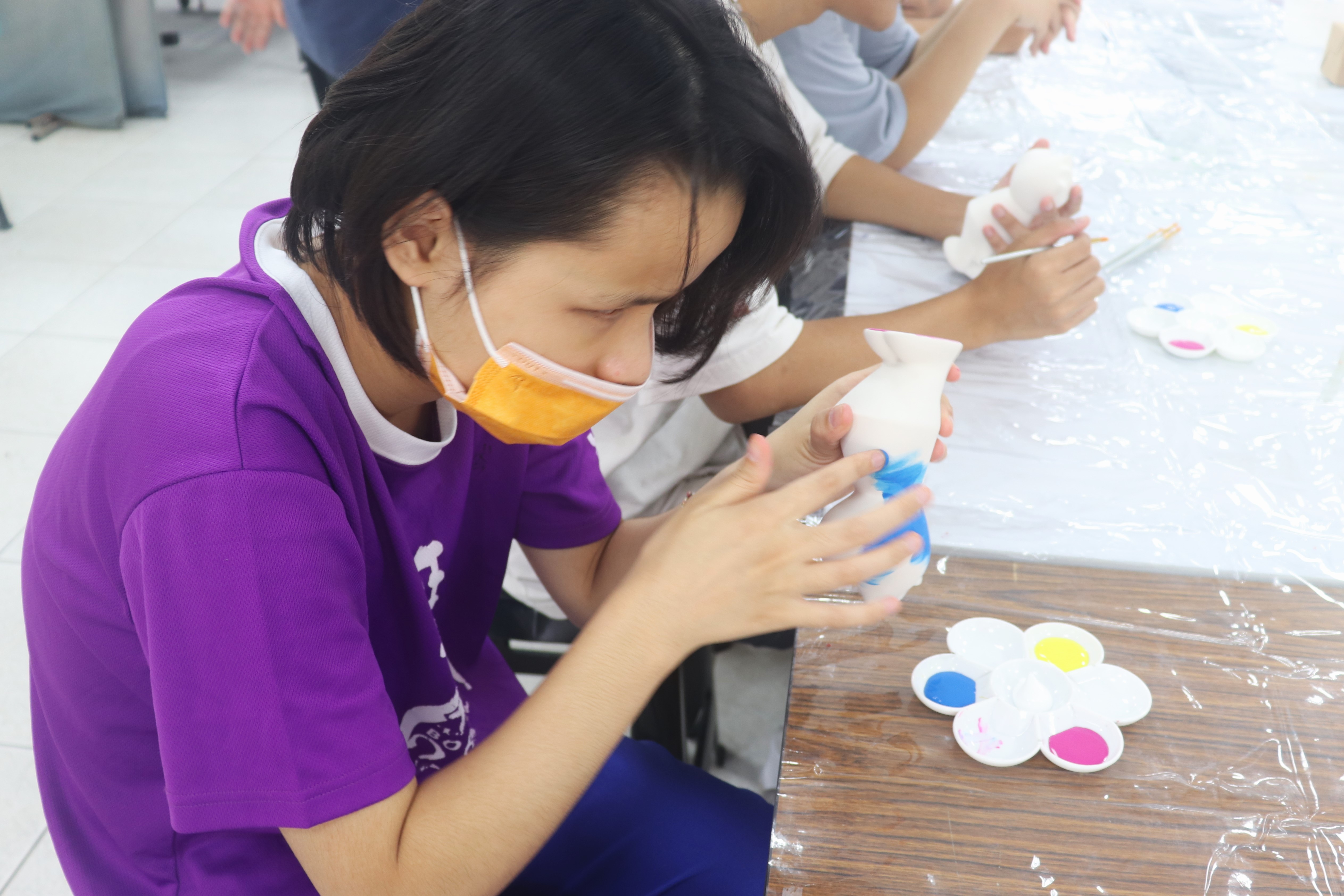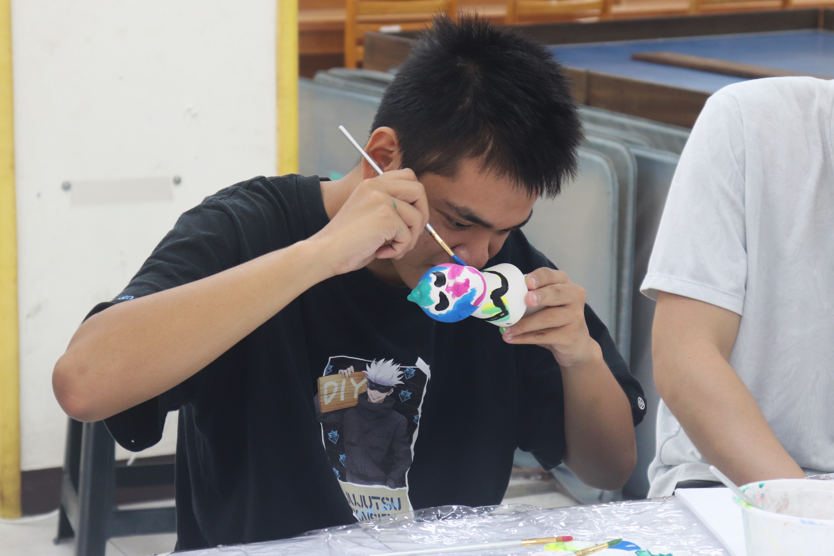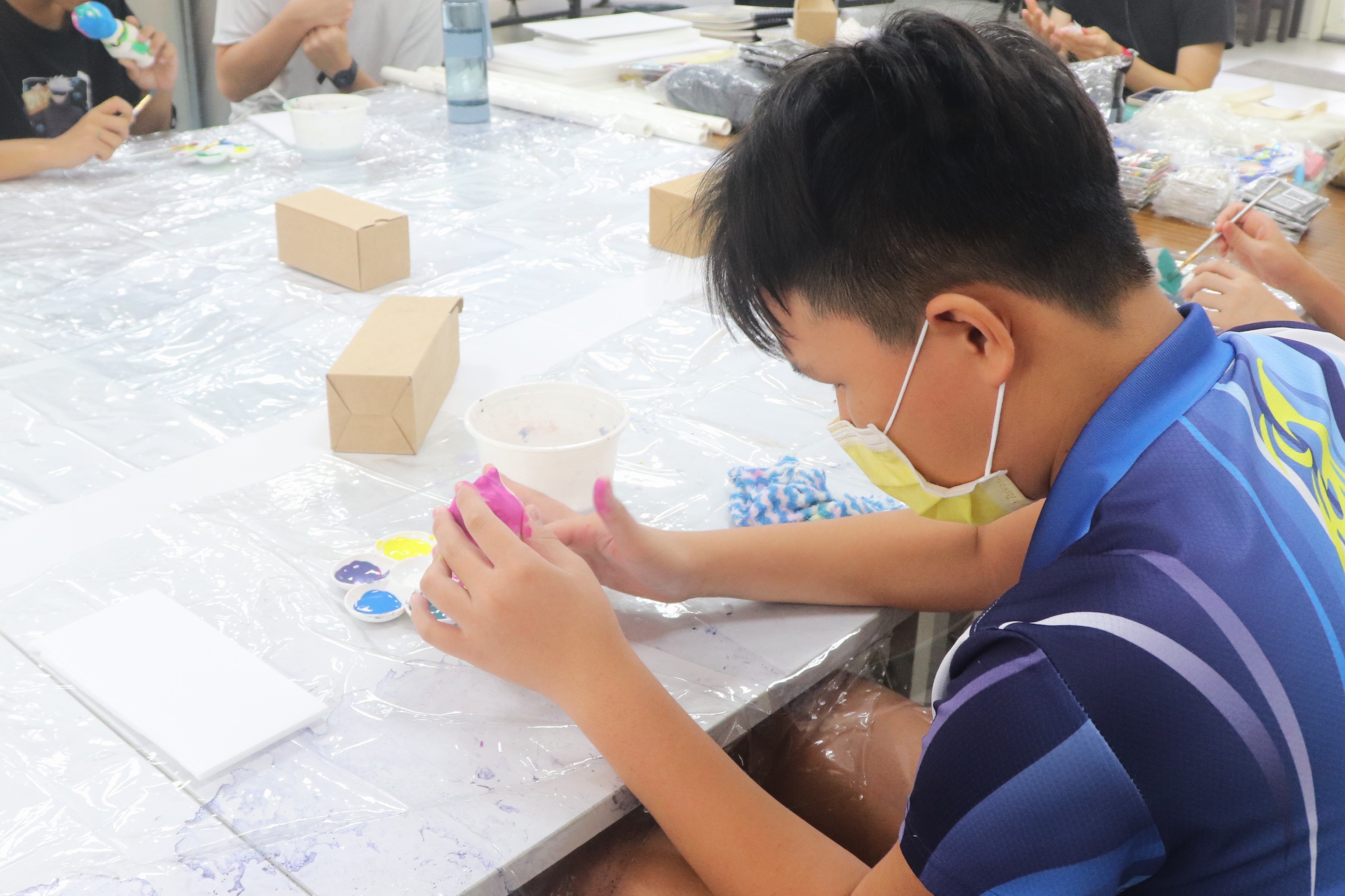 在上午,透過本會開發的教材,認識色彩原理及混色概念,並進行生肖龍的彩繪,下午的課程則從認識色彩與點線面開始,接著進行動物線條與水墨創作及創意動物撕貼表現,體驗了不同的創作方式。