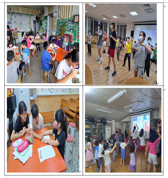 暑期到來,有較多的小朋友來參加課照班,每天的時間也較長。為了因應這樣的情形,在課程上也做了較大的調整,除了原本的課業輔導外,另外增加影片欣賞教學、手作課程、戶外運動、聖歌教學、校外教學、小團體課程等等活動,提供小朋友全人式的教學。一方面豐富課程內容,也滿足小朋友的身心需求,雖然工作人員都很累,但是看到小朋友歡樂的笑容,所有的辛苦也都化為喜悅了。