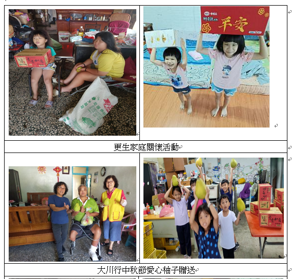 協會因為工作上的需要,和老板娘認識有10多年了,但沒有太多的互動。大前年老板娘主動詢問協會,是否有需要柚子贈送給「弱勢家庭」,就這樣建立了連續3年的捐贈柚子活動。一開始老板娘也沒有指定要捐贈多少,所以協會提出400個柚子的需求。老板娘看到協會提出數量後,又主動詢問協會還有需要嗎?因為還有柚子可以贈送,就這樣第1年協會聯絡了10多個社福團體,總共捐出3500多個柚子,讓很多家庭都度過一個快樂的中秋節。