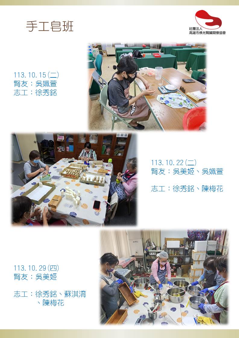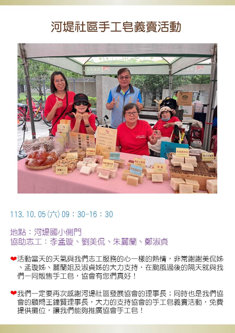 (1)113.10.05(六)09:30-16:30河堤社區手工皂義賣活動。