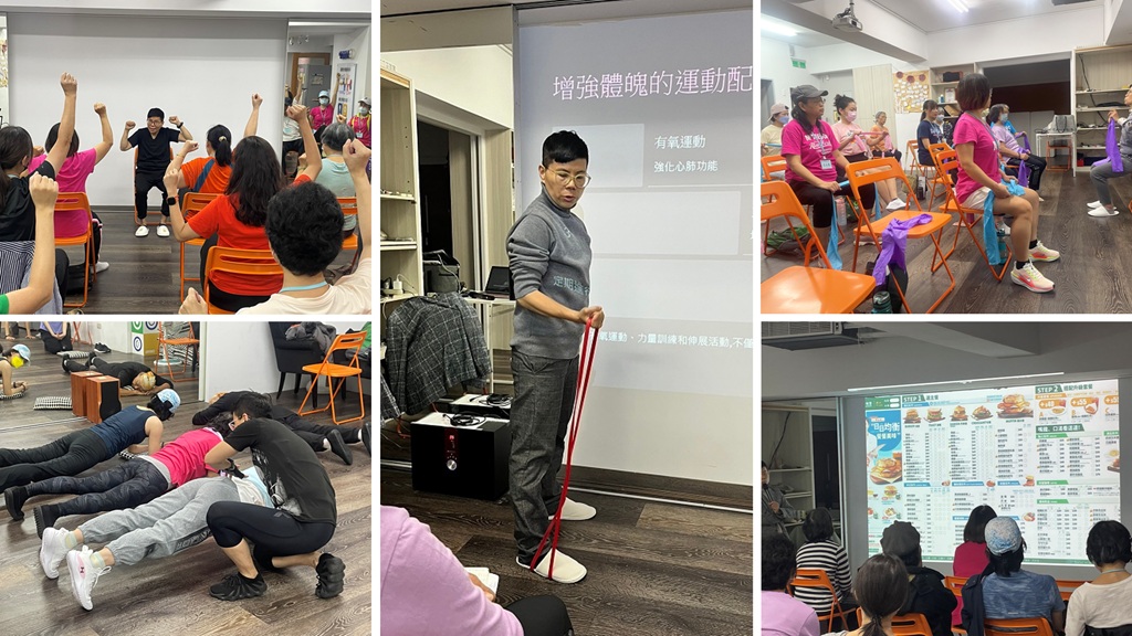 最後一堂更是收集各種類型的餐廳菜單,與大家一起來研究可以如何健康的外食,結果因為大家想要討論的美食餐廳太多,導致沒有辦法完成當天的運動課程。豹哥特別為大家外加一堂一小時的運動課程,有氧運動讓大家動的氣喘吁吁,可是每個人的臉上都非常的滿足及開心。豹哥以「健康是一輩子,而不是一陣子!」這句話勉勵病友們,雖然課程結束了,但健康營養及運動不停歇。