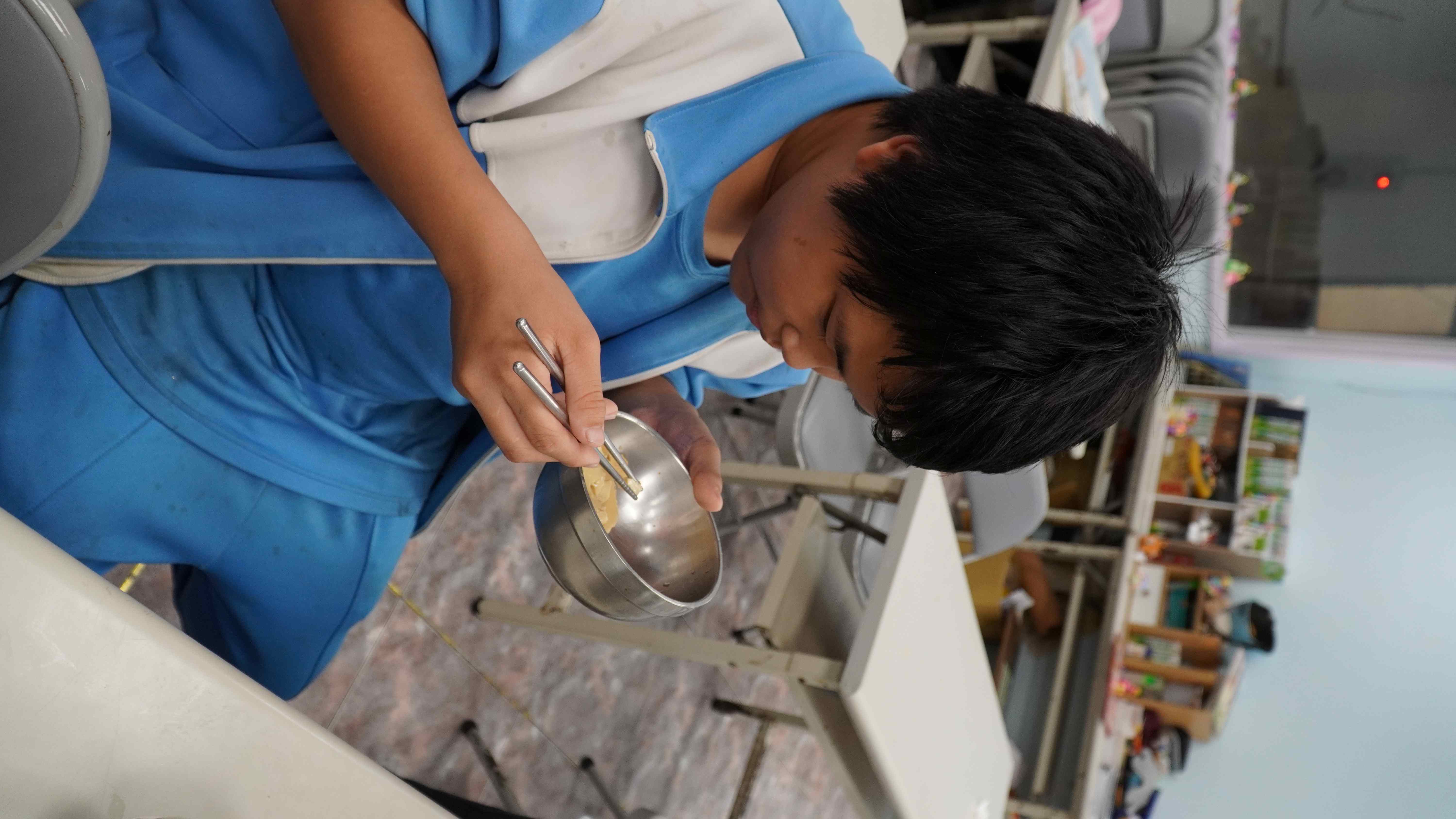 甜點的製作,老師教學生們如何製作美味的蒸黑糖布丁