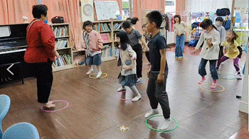 孩童班:由老師帶領歌唱童謠、手做,讓家長能心無旁鶩的聽課,提升玉里地區家庭的質量。