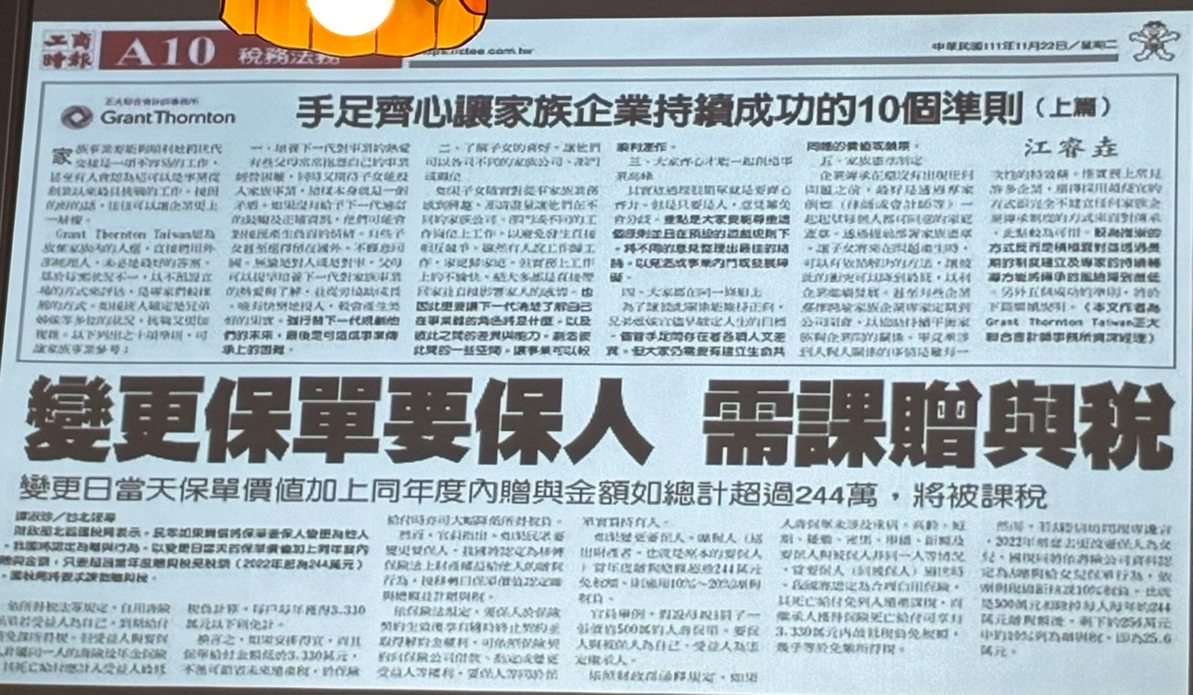 提出希望舉辦此講座的是一位經歷過滿多照顧歷程的大哥,當天上完才比較清楚知道他的用意.畢竟照顧長輩到一個年紀,長輩及自己隨時會發生什麼狀況都很難說...所以能夠多了解一些像是:遺產稅.長照險.變更保單要保人甚至贈與稅娜些,其實都是需要的!