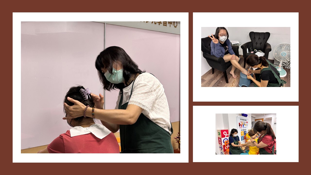每月的第三個星期三在吳宙妦老師的帶領下,「台灣香氣行者芳香照護學會」的芳療志工團隊前來為癌友們提供免費的精油按摩服務,志工老師耐心傾聽癌友的心聲,並依癌友的狀況搭配合適的精油與按摩手法緩解癌友因治療上引起的水腫、脹氣、皮膚乾癢、疼痛等不適感。
