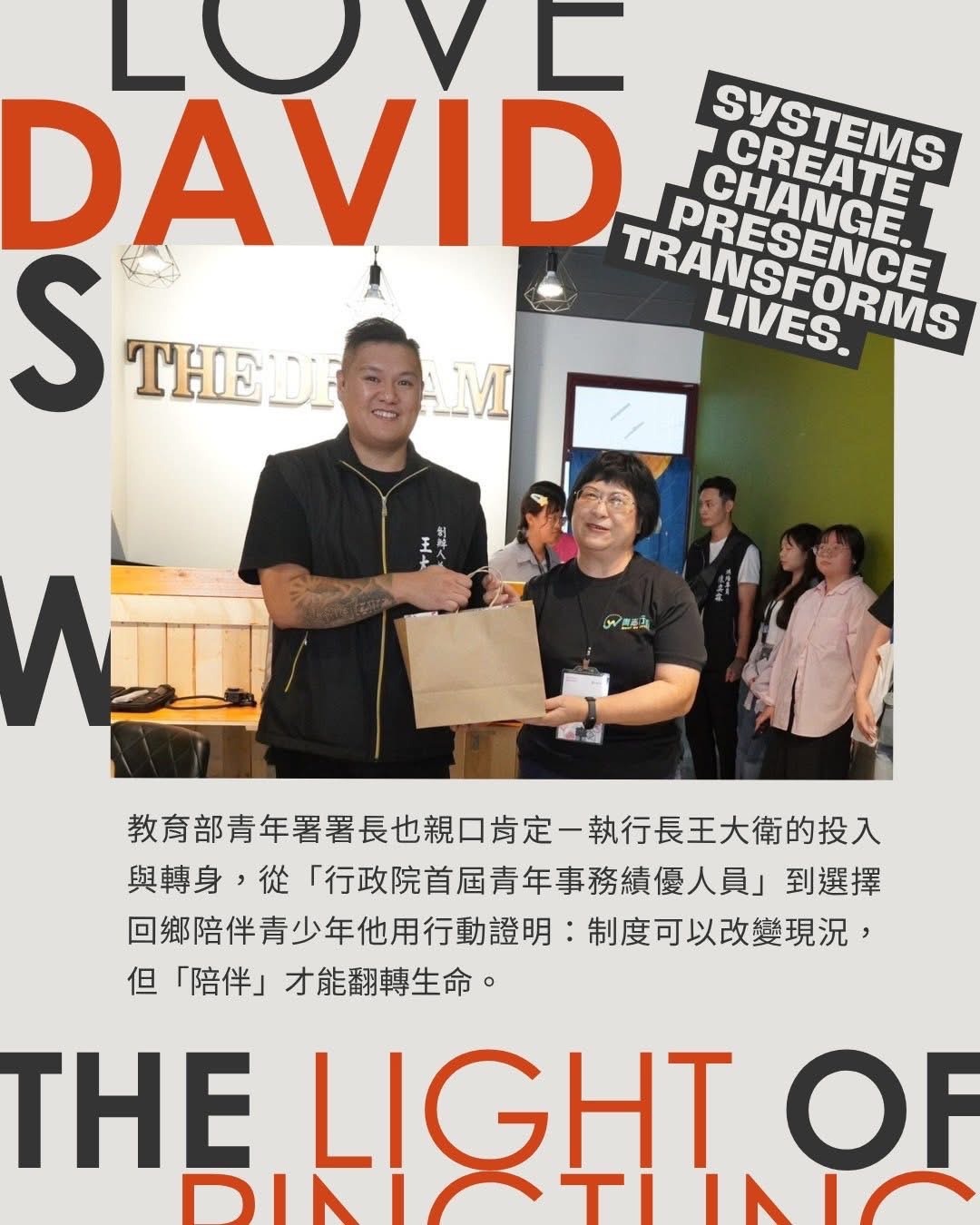 如今,他選擇回到南國屏東,從制度走向實踐,從個人故事走進群體改變,成為一位真正扎根土地、陪伴青少年的夢想實踐者。
