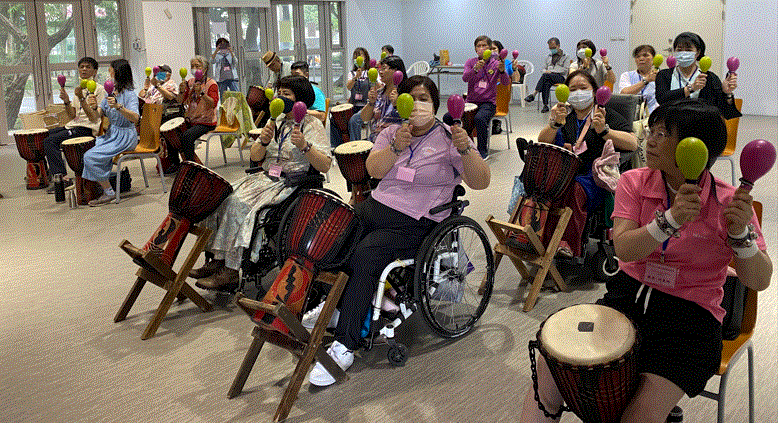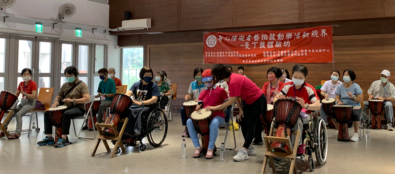 本會推動「曼丁鼓節奏療癒課程」,透過手拍打擊樂器與團體節奏練習,引導脊髓損傷者釋放壓力、強化上肢協調與肌耐力,提升情緒穩定與自我表達能力。課程結合藝術與復健功能,增進生活品質,促進社會參與,是本會多元復健服務的重要實踐。