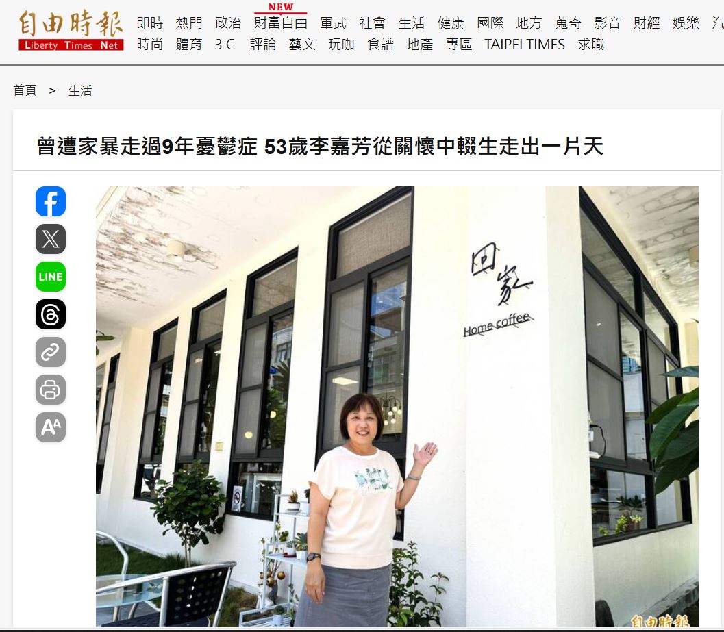 同時,《自由時報》也專文報導嘉芳師母的生命故事──儘管走過許多黑暗時刻,依舊選擇成為光,照亮中輟孩子前行的道路。