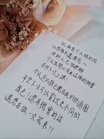 💐然而,在這堂花束課中,小晴卻展現了前所未有的專注。