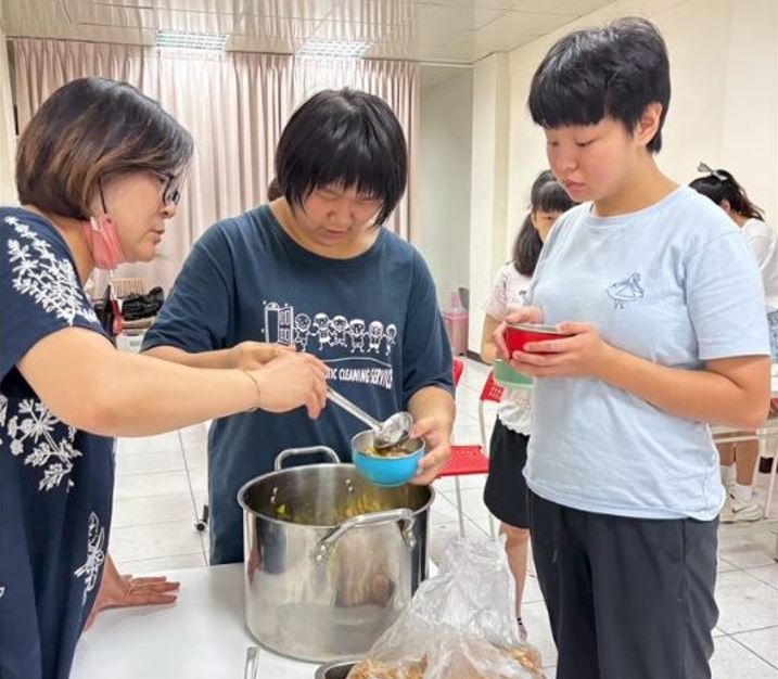 針對身障學童舉辦「健康輕食烹飪」與「環境清潔整理」課程。從洗菜、煮湯、擺盤到收拾廚房,學員在老師與志工的帶領下,學習日常生活技能,並在過程中彼此合作、互相幫忙。