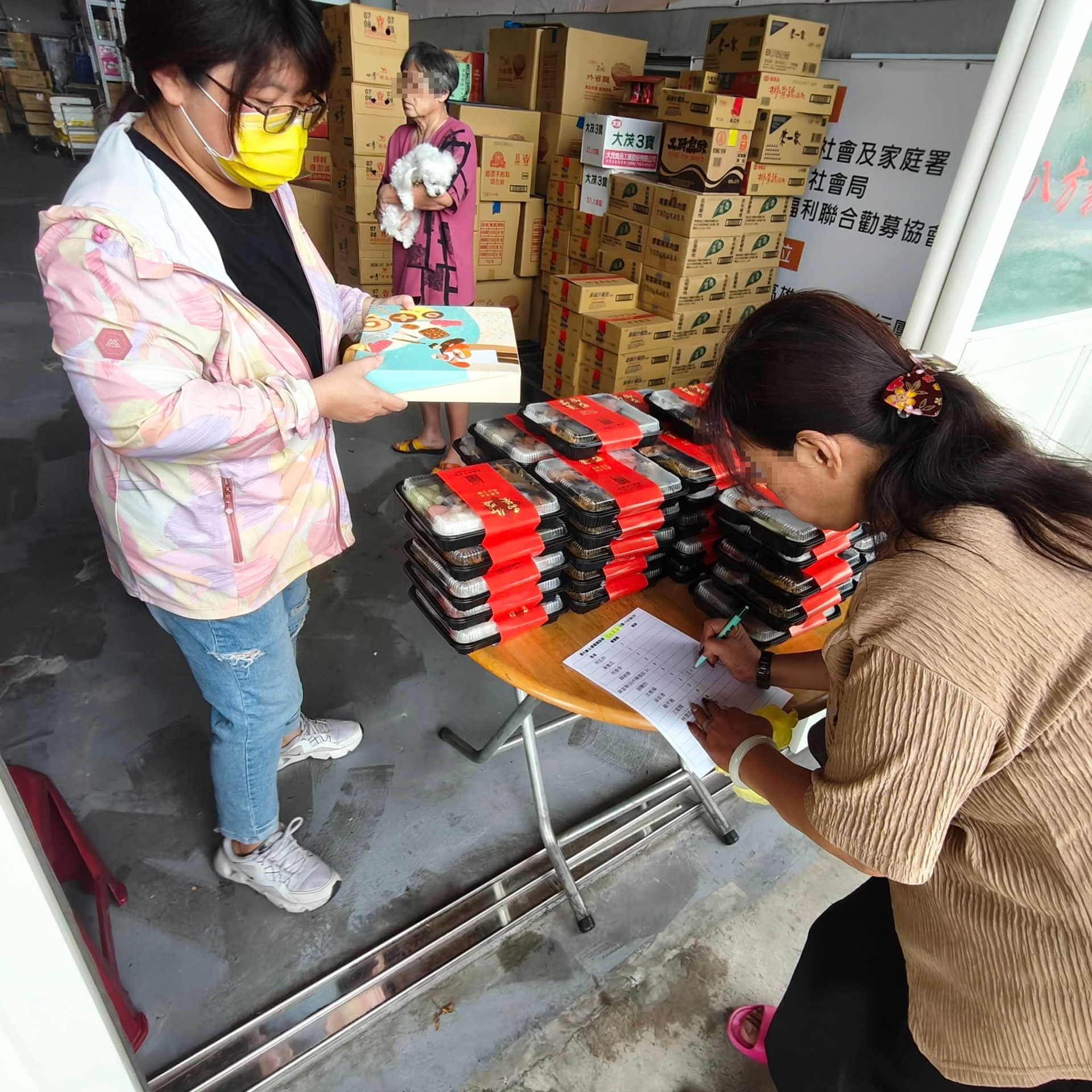 他們放下個人休閒,在物資整理、載運餐盒、現場辛勤付出。