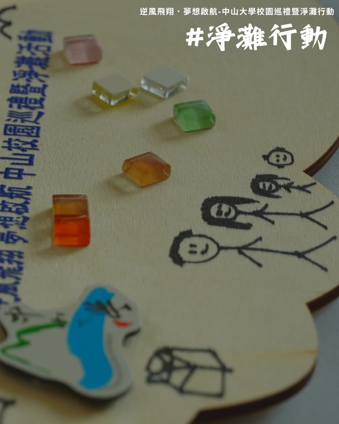 大家在岸上仔細分類,最後用撿來的海廢製作出「紀念品」,
