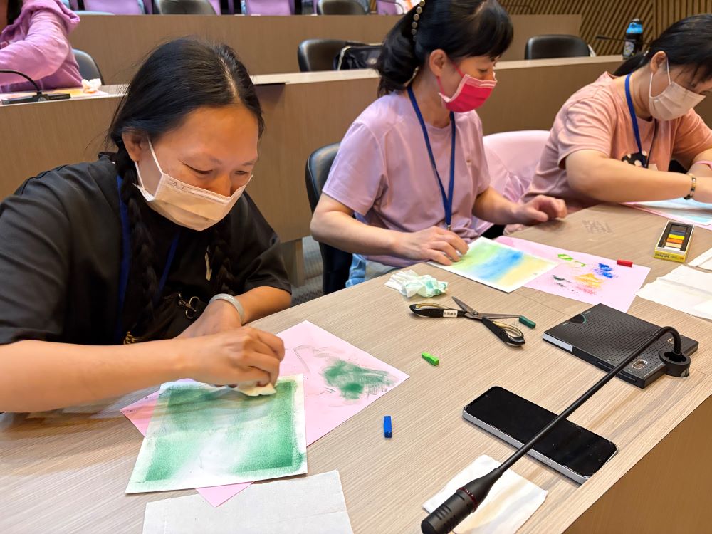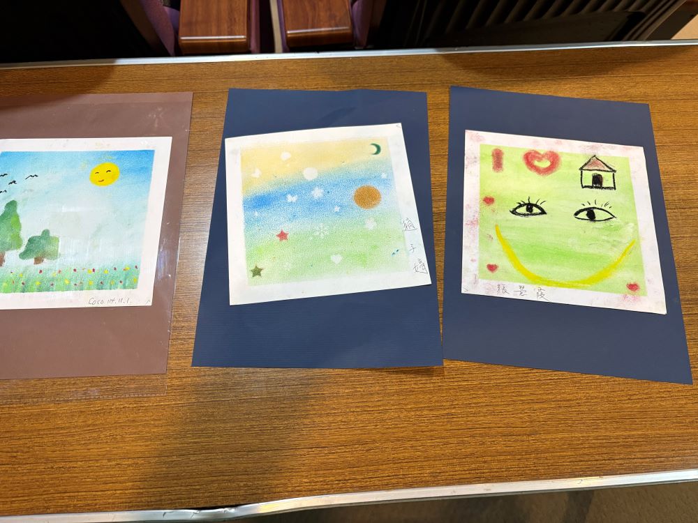 從來沒有做過粉彩畫的我們,在老師的引導之下,驚奇的展現出很可愛的圖案來,真的很有療癒效果,看過作品的人都要發出讚美驚嘆。