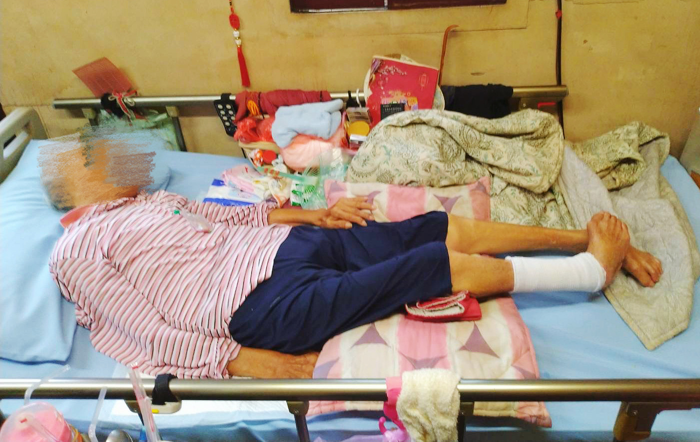 今天,想跟你分享一位靜靜躺在床上的長輩故事——趙奶奶。趙奶奶一生未婚,沒有子女,兄弟也都離開了。目前由親戚偶爾探視照料,如今的她,是獨居、無依的長輩。趙奶奶長期臥床,無法下床行走,右腳有慢性傷口,必須定期換藥。目前透過長照服務協助洗澡與就診,但每天的三餐、醫療、民生用品,尤其是成人尿布……都是一筆沉重的負擔。我們想替她募集一筆照護資金,幫她維持最基本、最安心的生活條件。她沒有子女、也沒有誰可以依靠,只能靠我們這群素昧平生卻願意相信愛的人。您的愛心,將能幫助趙奶奶重拾希望,照亮未來!