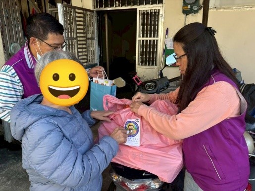 為清寒弱勢家庭發放物資,同時表達關懷。