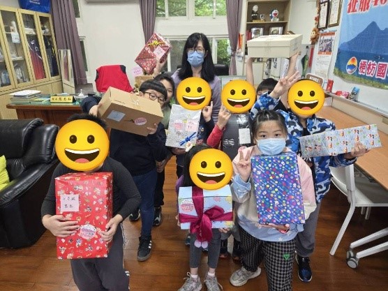 十二月中旬至月底,分享聖誕鞋盒禮物至宜蘭縣內偏遠學校,讓孩子們充滿笑容度過聖誕節。