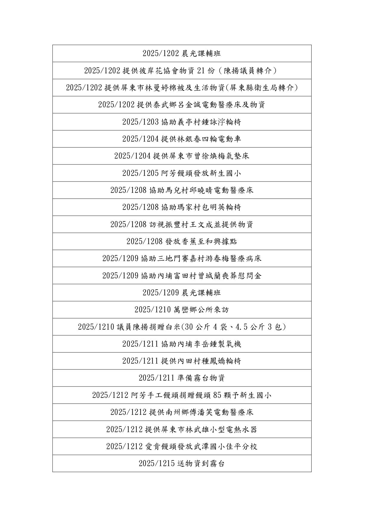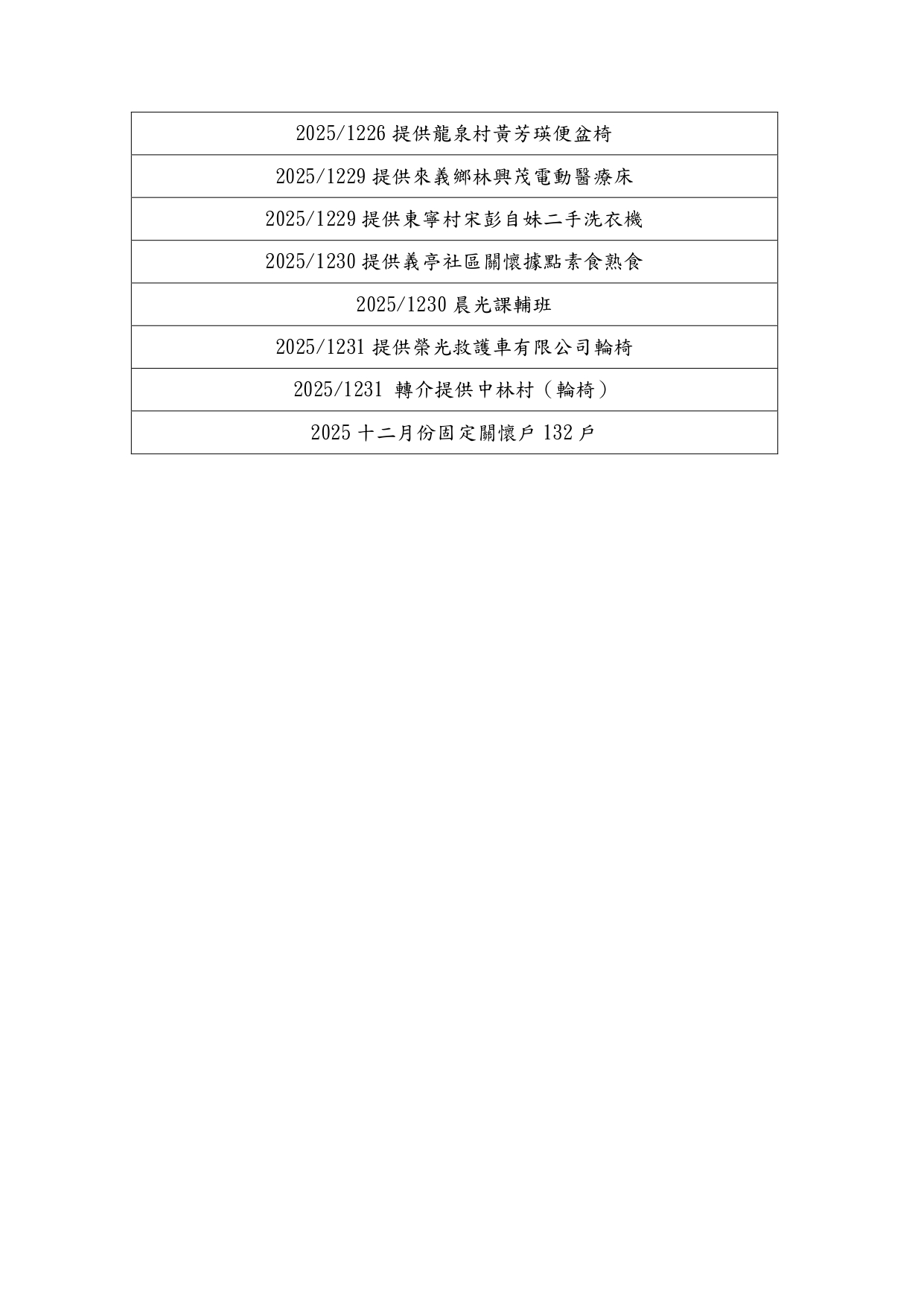 2025年12月「社團法人屏東縣愛心樹慈善會」大小事