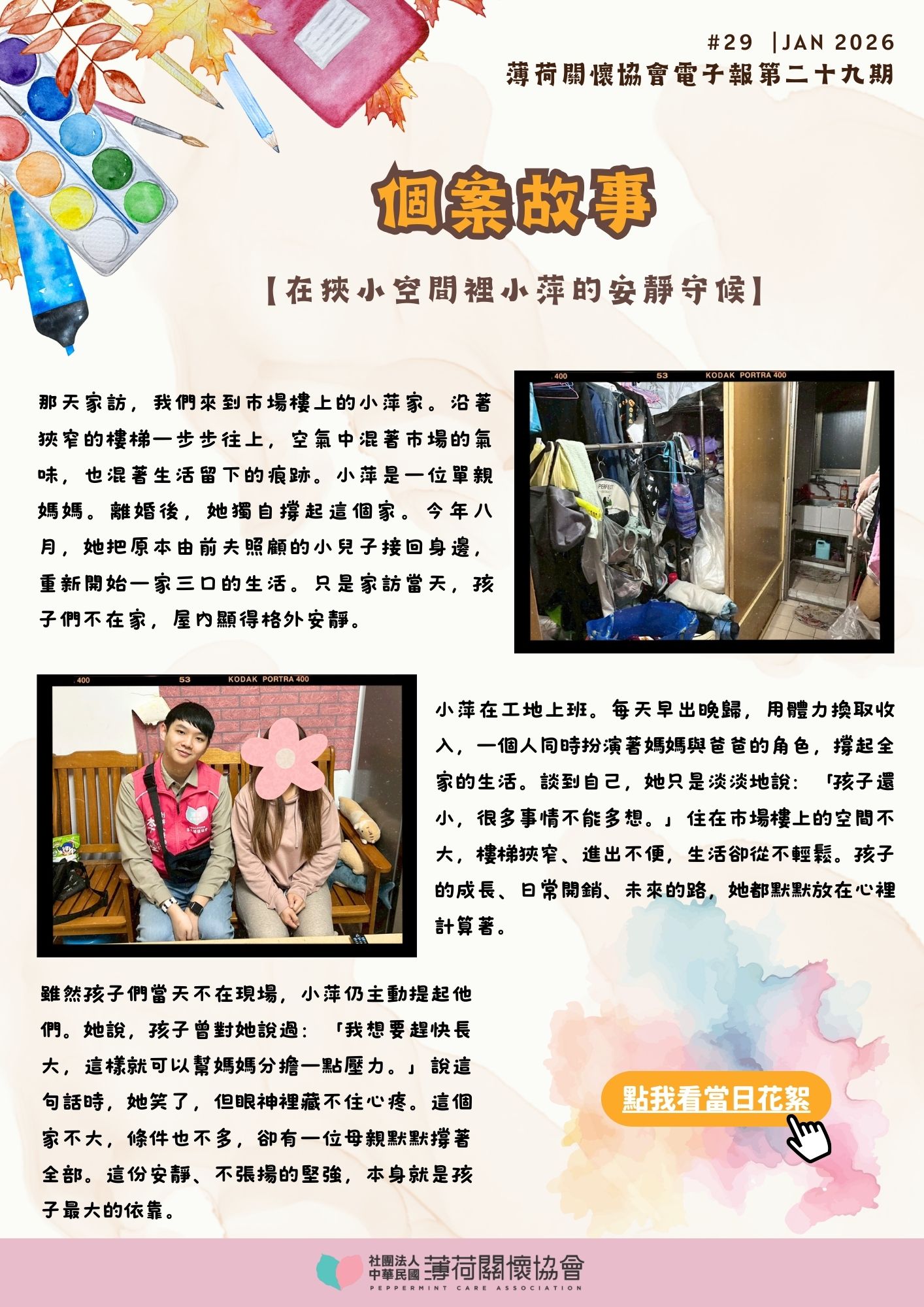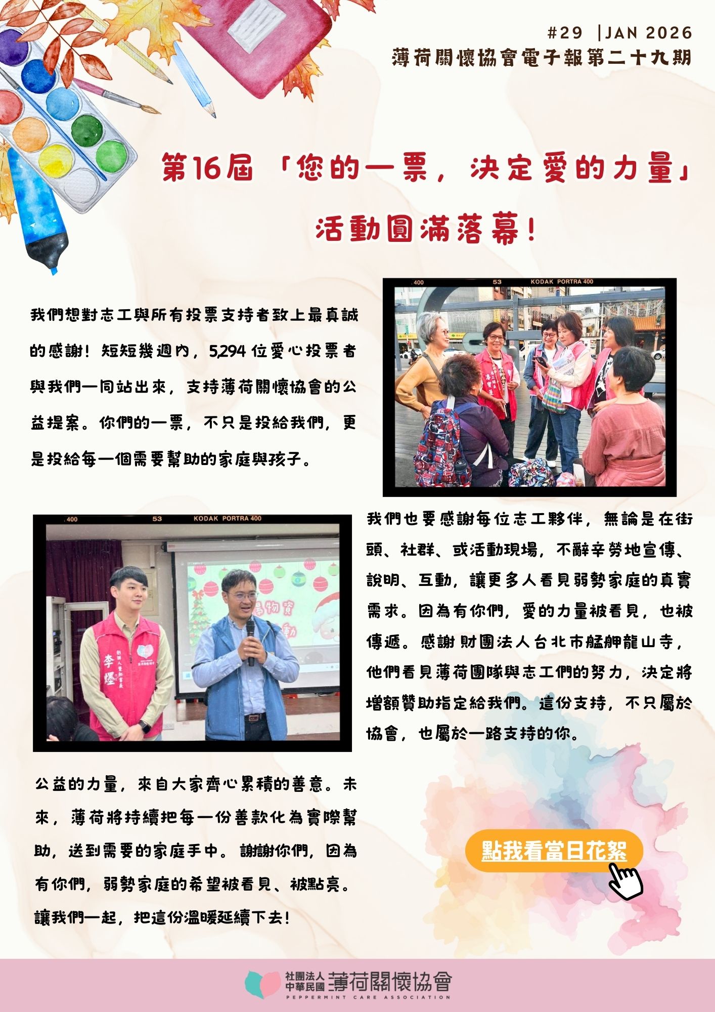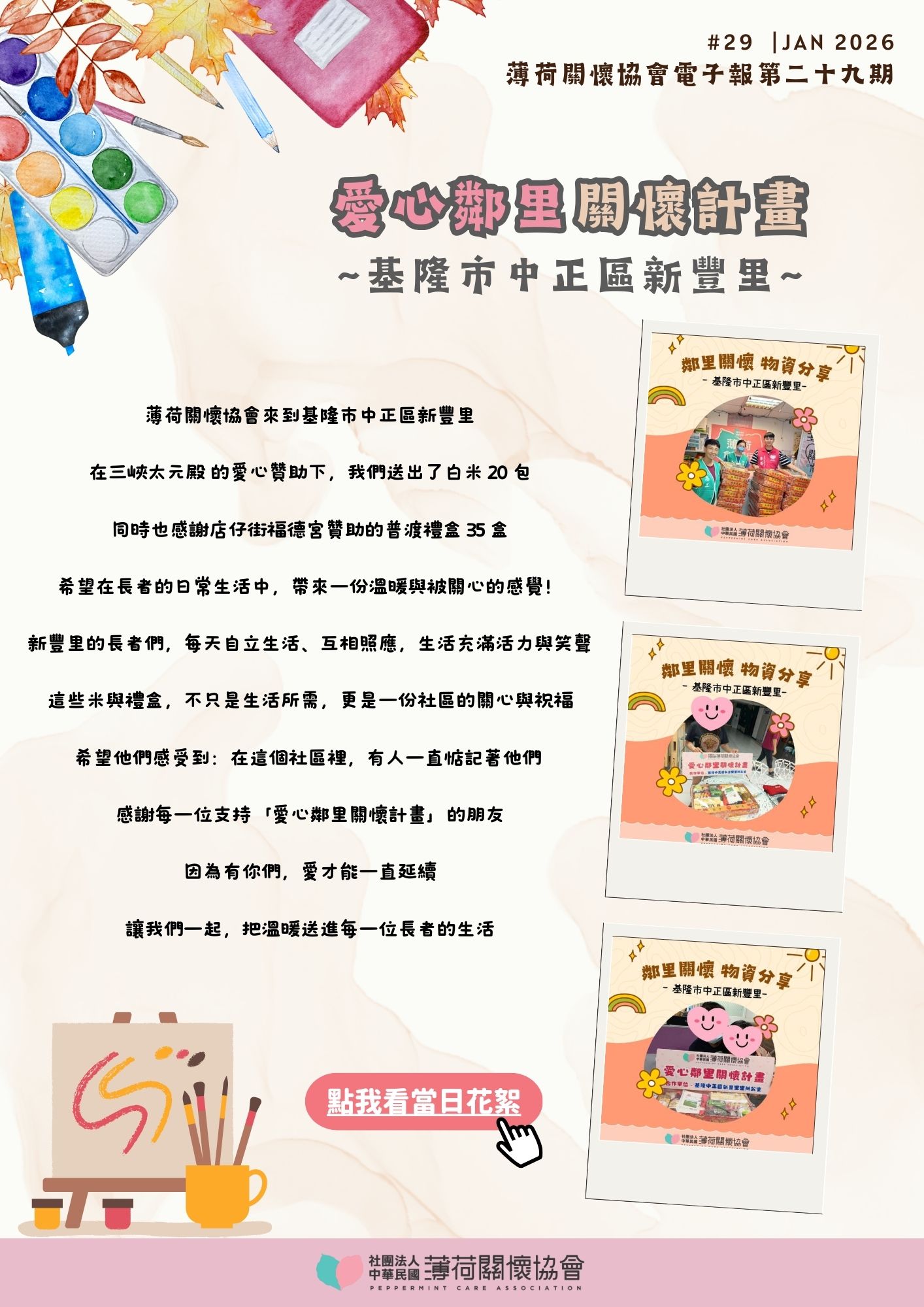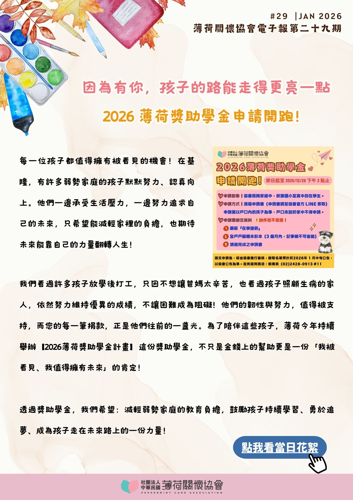 薄荷關懷協會始終相信,公益從來不只是把物資交到手中,而是讓人知道——在這個世界上,仍有人願意為你停下腳步。愛心沒有年齡的界線,公益人人都能參與。只要願意付出,哪怕是一個微笑、一雙伸出的手,都能在這個冬天,為他人帶來改變的力量。