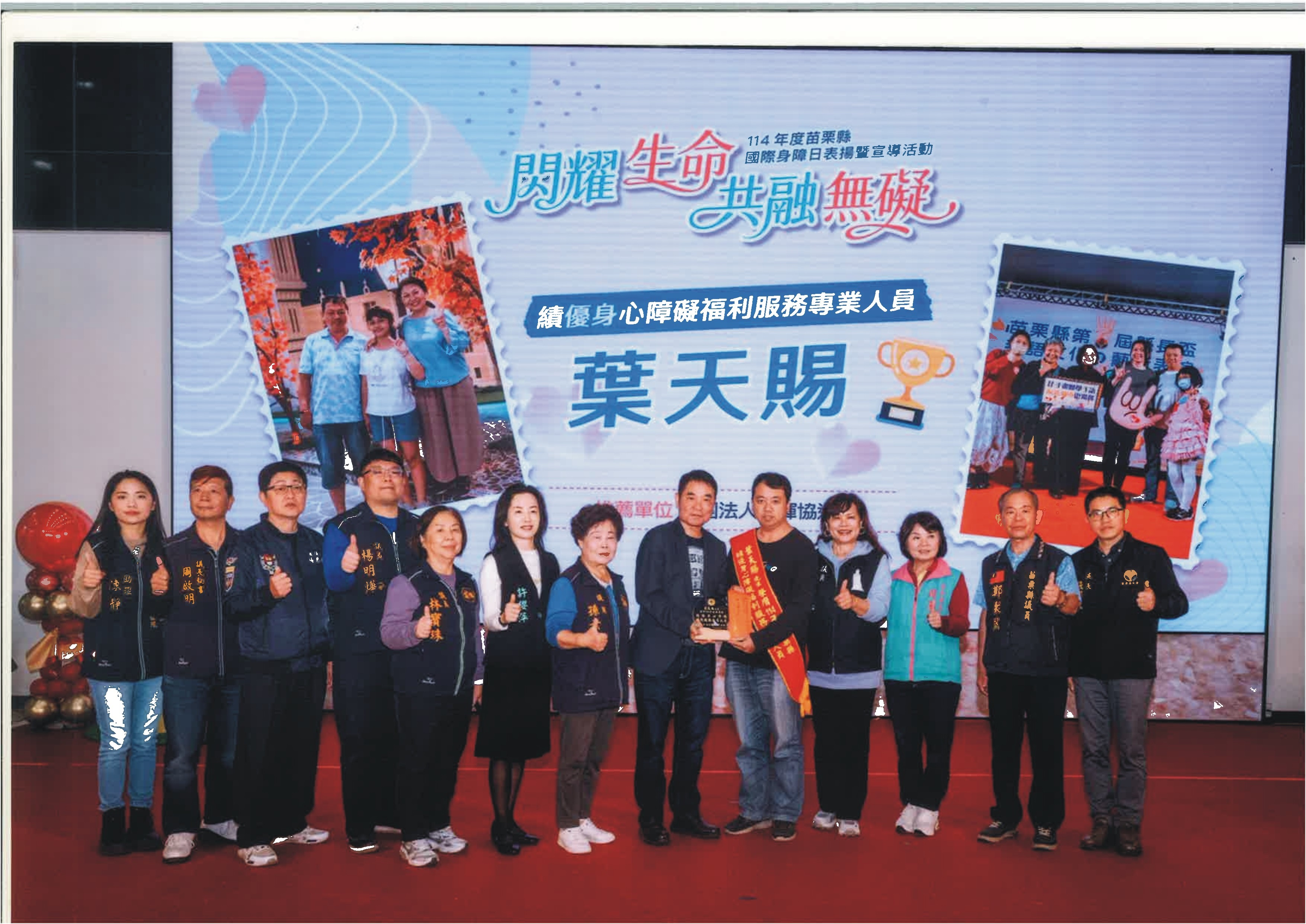 在國際身心障礙者日表揚活動中,苗栗聲暉不僅獲得「社團考評甲等」的肯定,更見證了多位生命榜樣站上舞臺——
