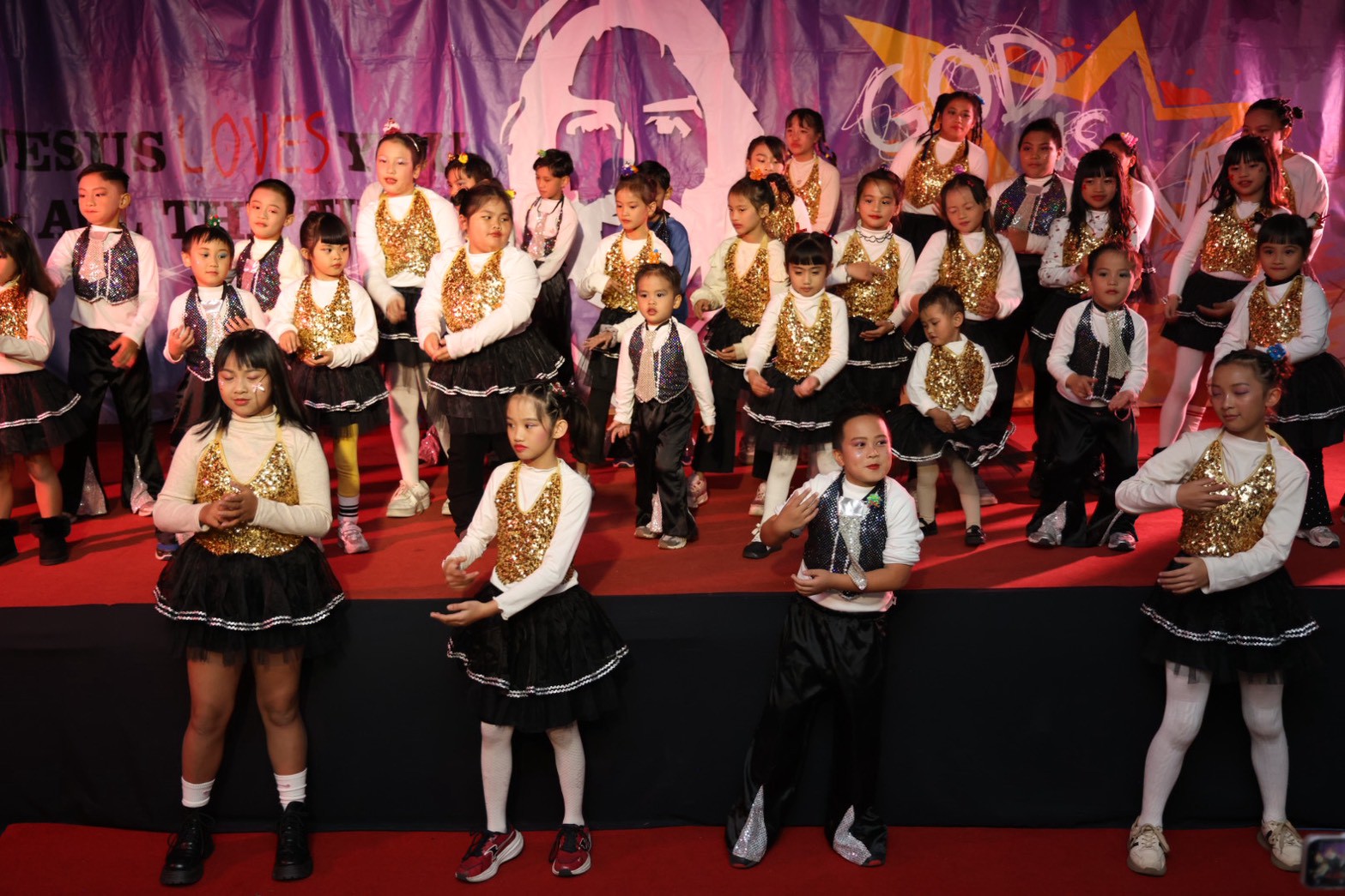 在聖誕節,我們也參與教會的聖誕晚會,我們從九月開始練舞,在聖誕晚會那一天,幫每個孩子畫上漂亮的妝,也跟許多人募款,讓孩子們在舞台上可以有漂亮的衣服可以穿,並呈現為期三個月的舞蹈成果。家長們也都積極參與小朋友的表演。