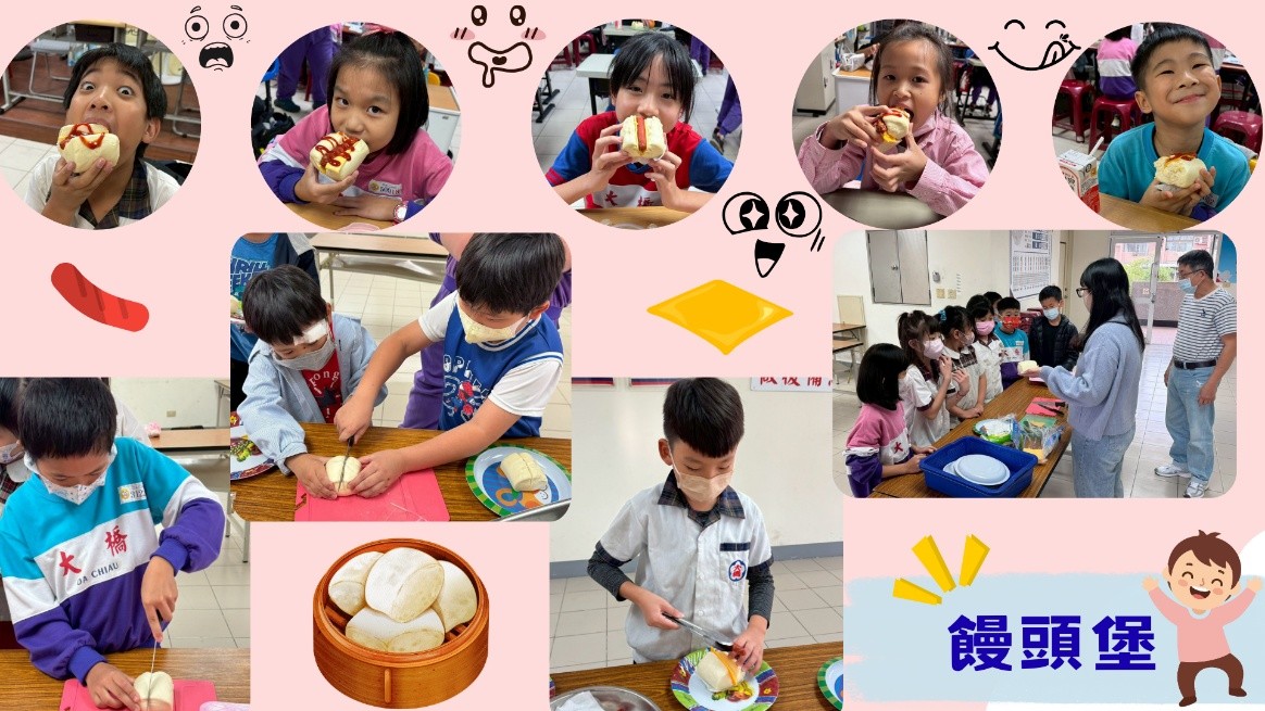 過程中,高年級的小綸主動走到低年級的小嘉身邊耐心指導,每一次的協助,都是把學會的能力分享給他人的溫柔時刻。在香氣與笑聲中,饅頭堡完成了,也悄悄把「嘗試、分享與陪伴」一起夾進了這堂課裡。這不只是一份點心,更是一段溫暖的成長時光。