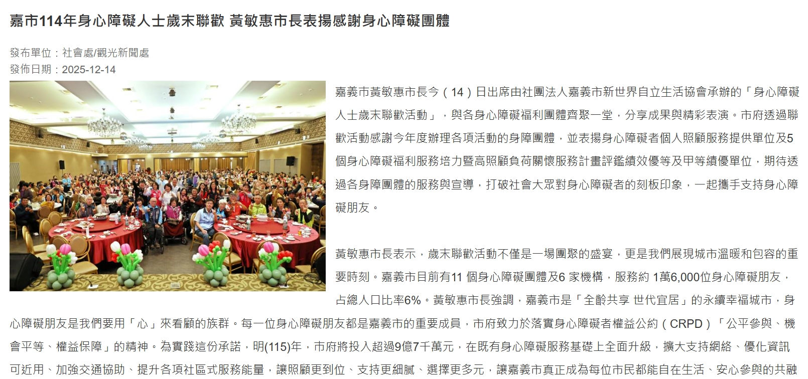 嘉義市身心障礙者權益保障推動小組第十二屆第2次會議