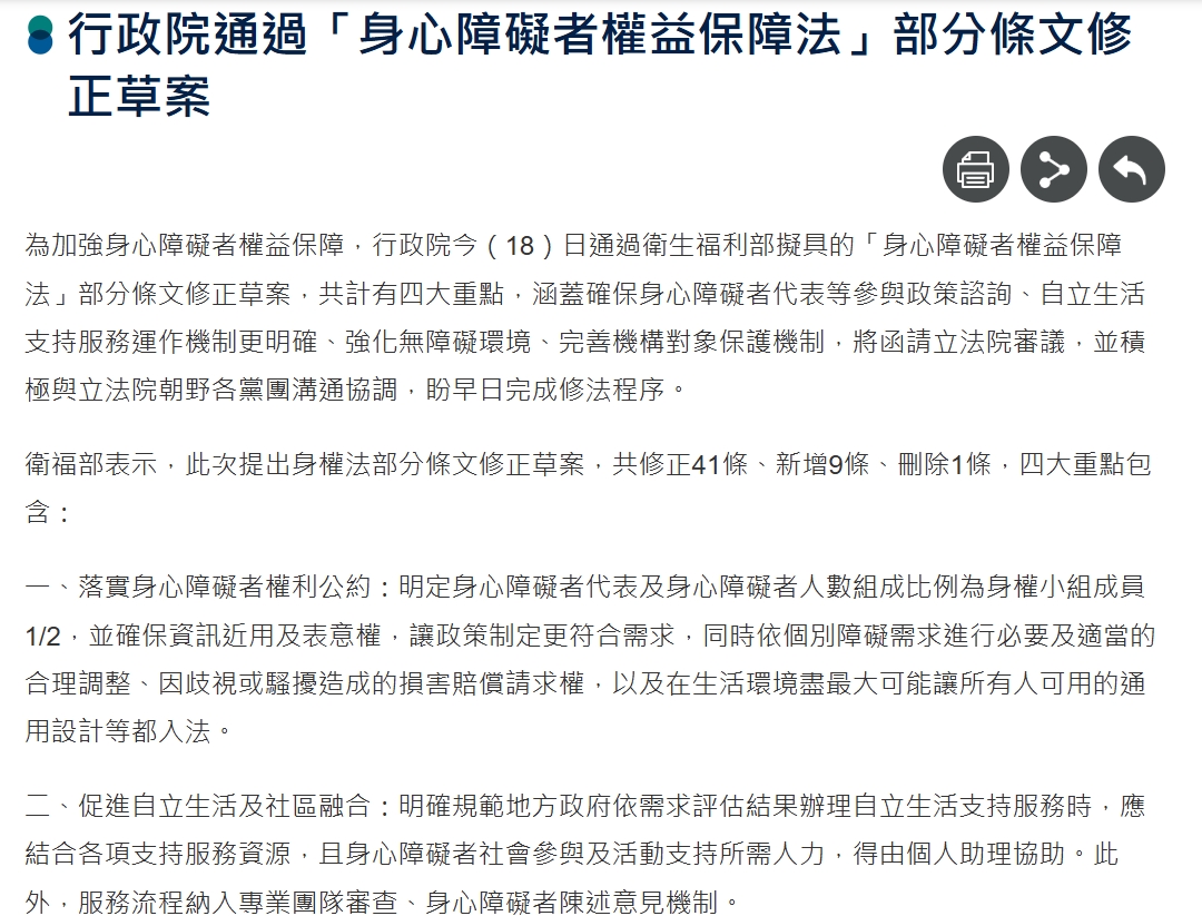 圖片七&圖片八:公告行政院通過「身心障礙者權益保障法」部分條文修正草案資訊