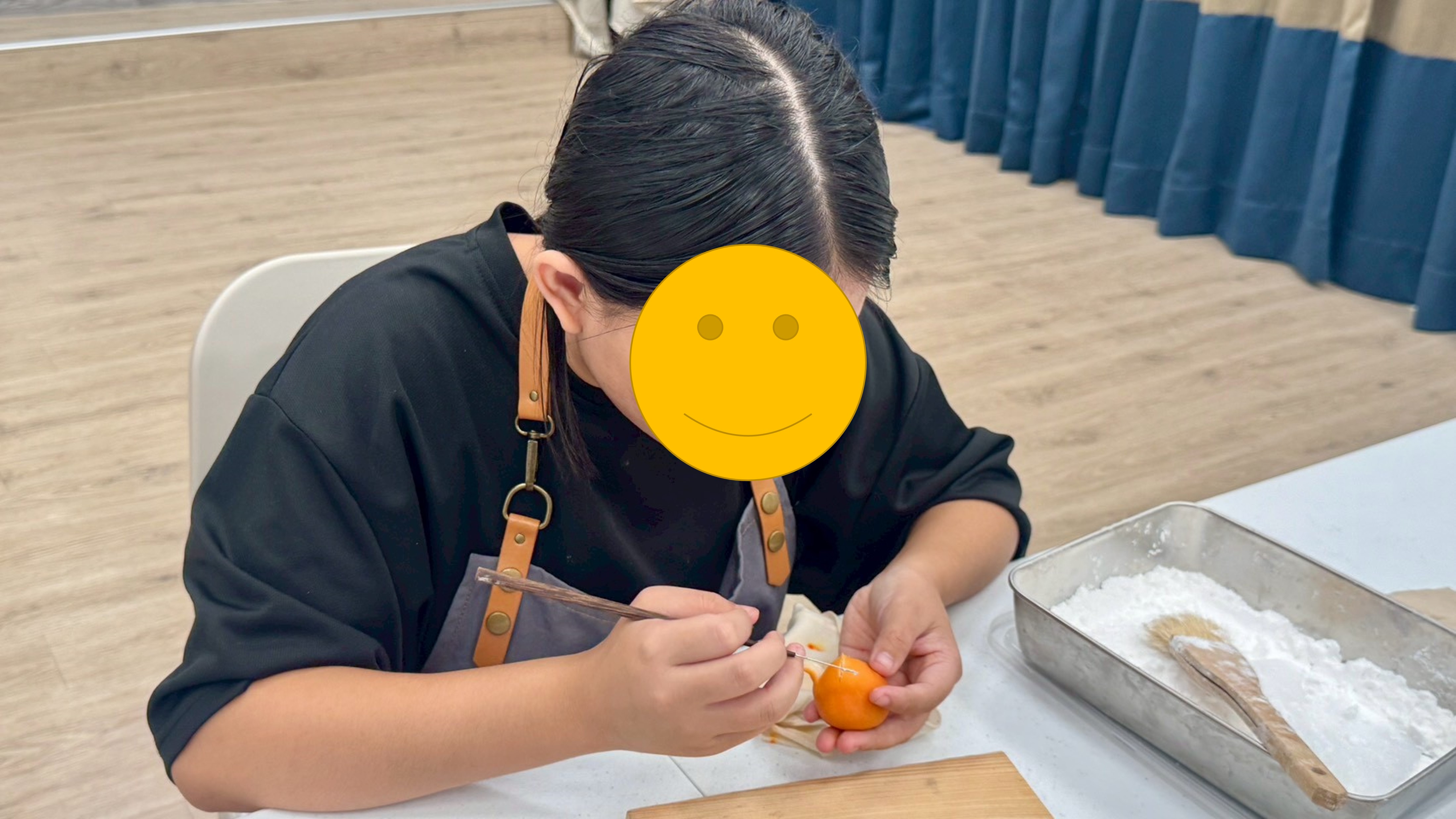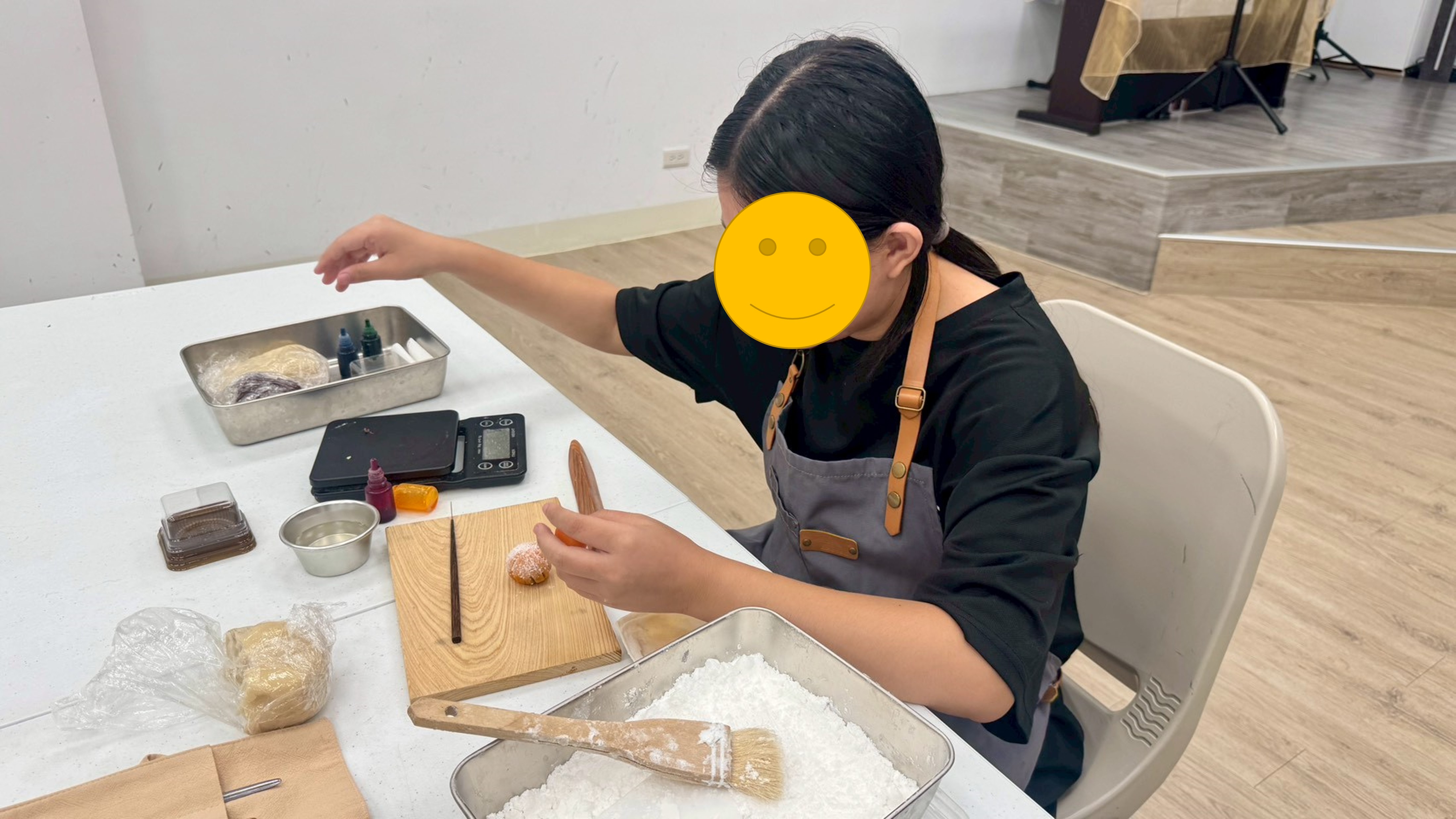 一開始從最簡單的銅鑼燒,一路到剪菊、刷抹茶,