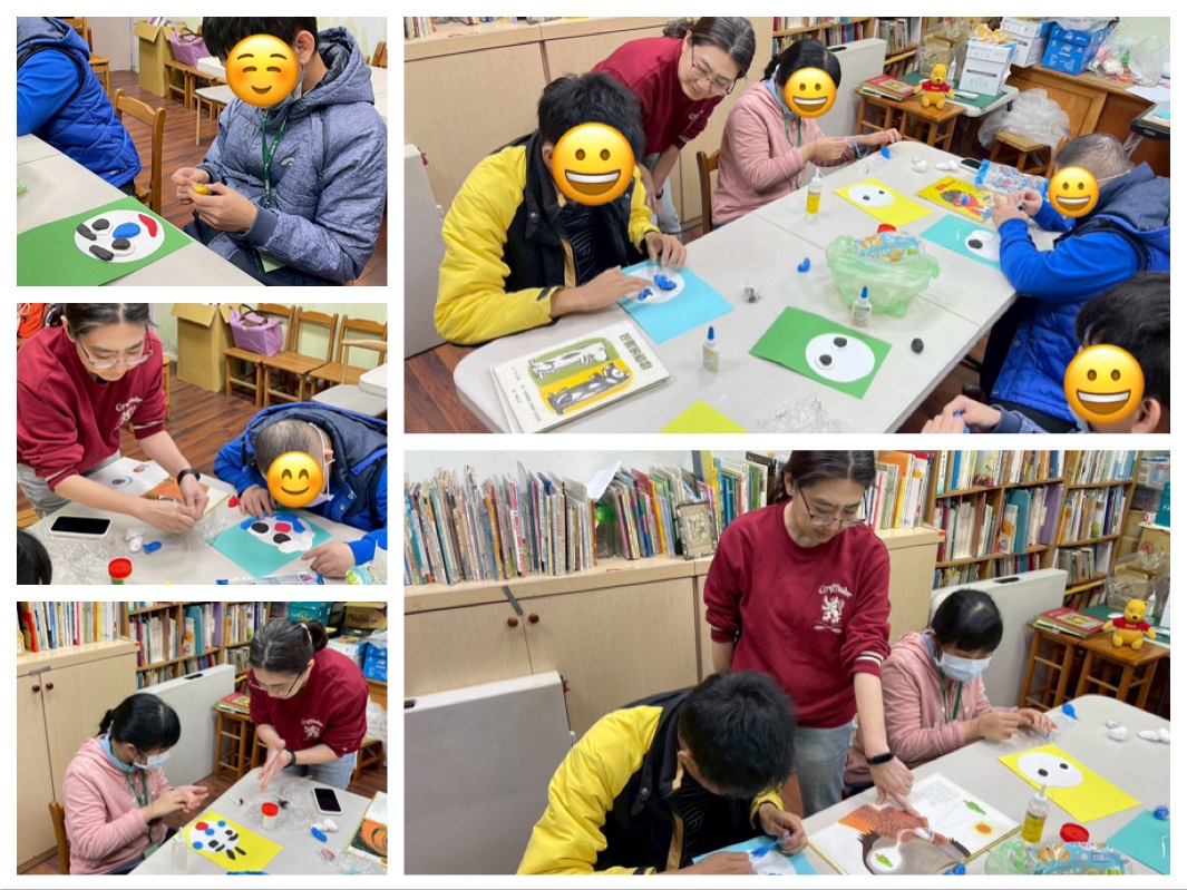 我們一起讀了繪本《形狀遊戲》,發現原來透過不同的線條與區塊組合,可以變幻出各種生動的表情。接著,我們走進《眼睛的故事》,這才發現小小的眼睛裡藏著好多層次!孩子們開始觀察:開心時眼睛是什麼形狀?驚奇的時候呢?