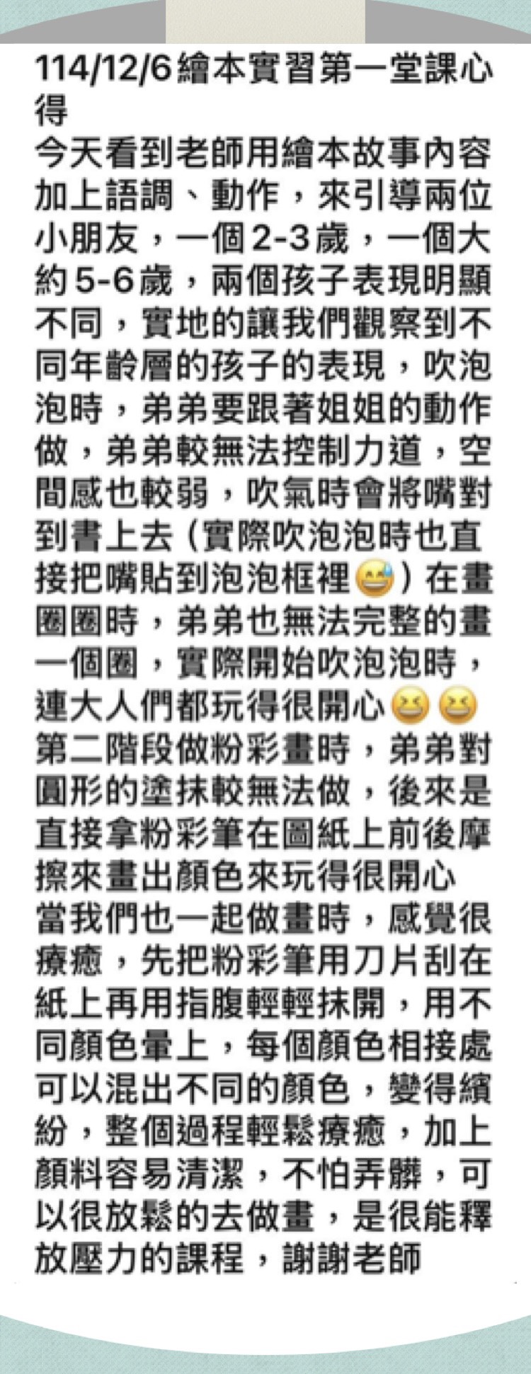 恭喜所有完成初階課程的繪本種子老師們!理論的學習告一段落,現在我們即將帶著滿滿的知識,踏入最令人期待的實戰見習與實習階段!