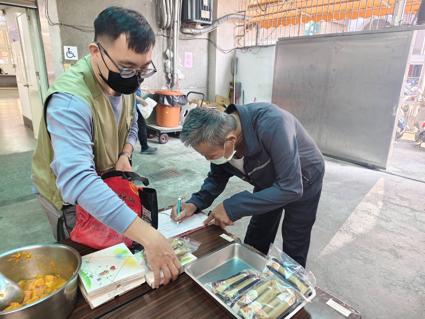 每周二至周五製作愛心便當,鼓勵弱勢長者前來單位取餐點&共餐,增加他們踏出戶外與人交流的機會,這個月愛心便當總共發送134份、物資發贈(水果、麵包、飲料、泡麵)100份。