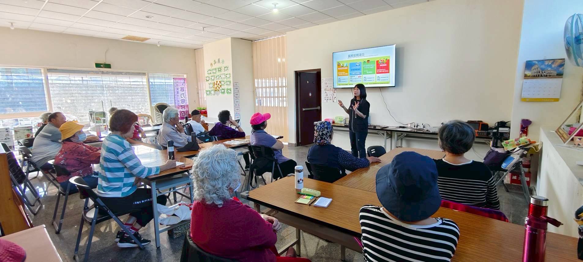 我們邀請了專業講師為長輩與新住民姊妹進行健康與權利宣導。大家專注地看著螢幕上的長照資訊,學習如何守護自己與家人的健康。