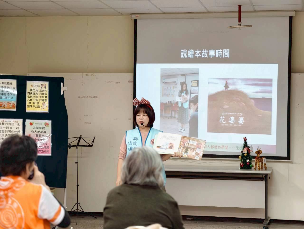 多年以後,我在群我繪本故事團講花婆婆的故事,到據點說故事給長輩們聽。