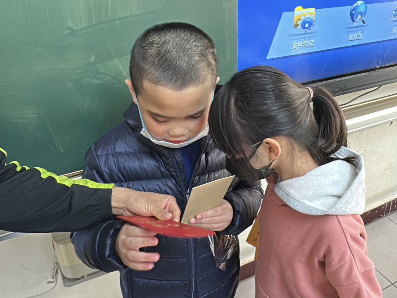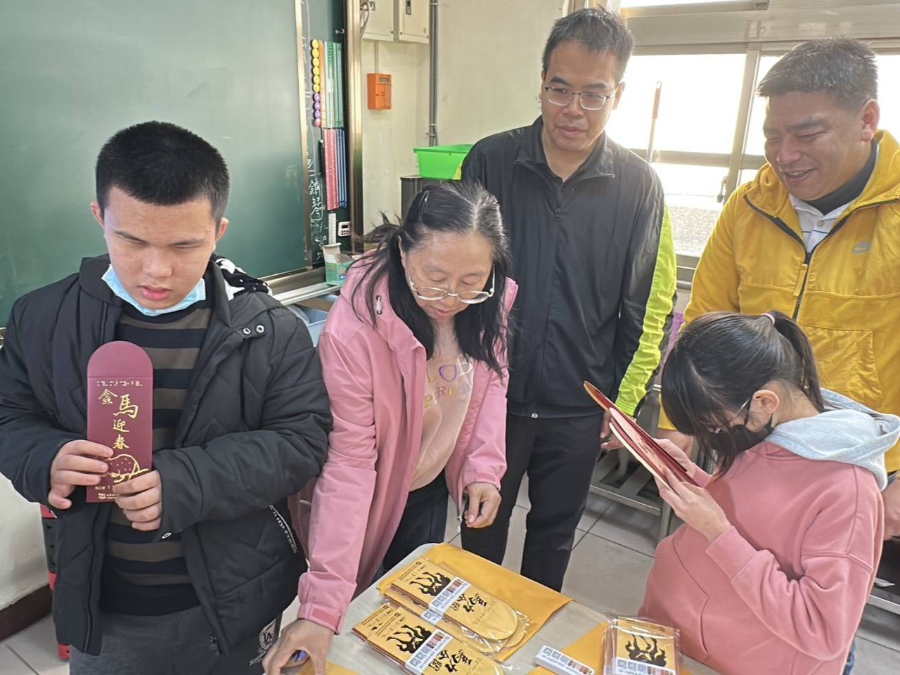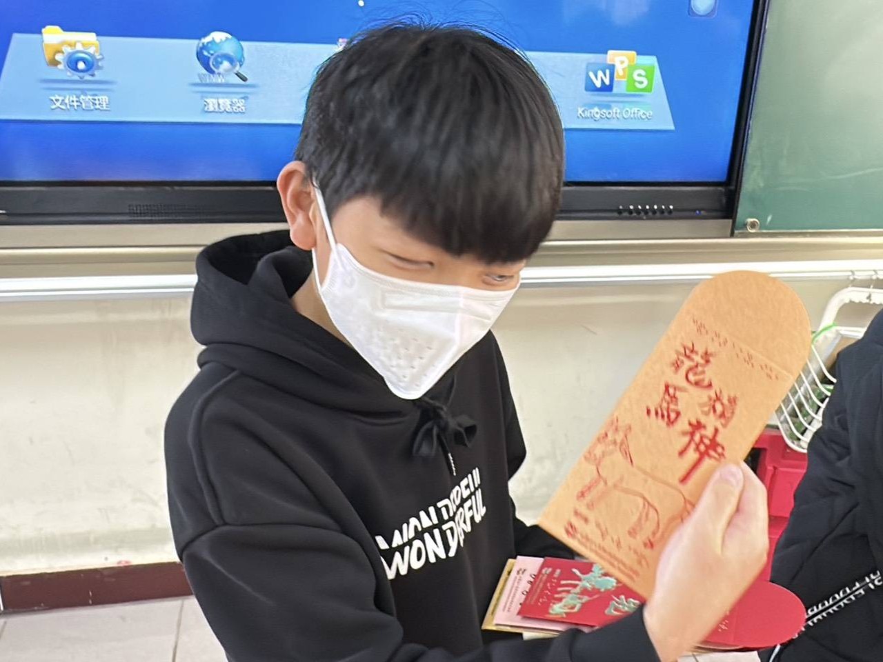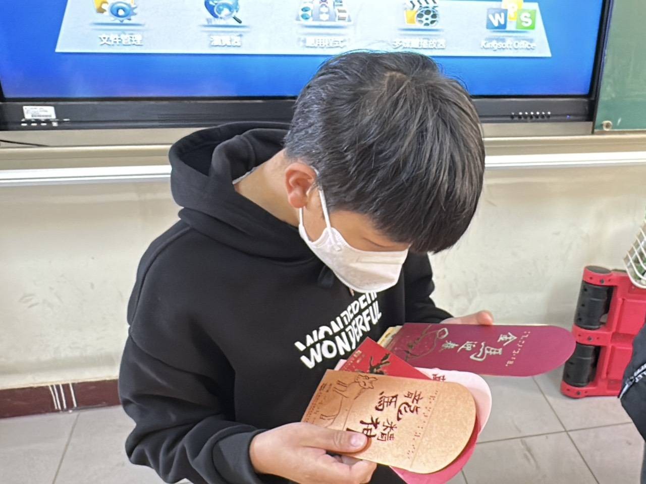 隨著紅包袋製作完成,學生們也第一時間收到了自己的作品。