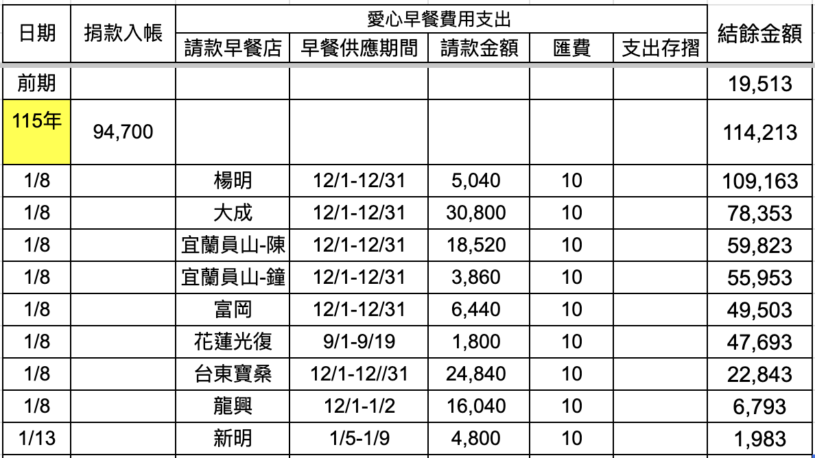 愛心早餐:112,230元 |