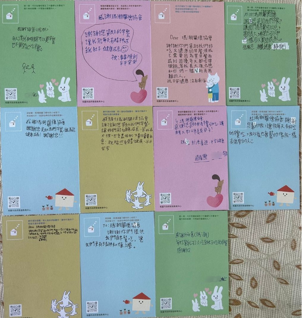 雖然瑪潮從未規定領取愛心早餐必須寫卡片回報,但許多合作學校的老師,仍會在期末帶領孩子學習感恩。