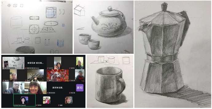 🎨1/2下午協會與慈濟共同舉辦的第 2 期遠距線上繪畫課程,由 #黃政強 老師帶著15位學員,回到最關鍵的基礎功-黑白素描✏️。今天的主題是圓柱結構練習,老師即時在遠距線上畫實物杯與壼給大家看,小編覺得這次的結構練習,是目前最難的一次,因為畫立體的柱形其實非常考驗觀察力與耐心!