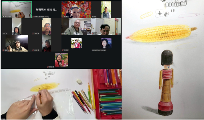 🎨1/9下午🥶寒流來襲的午後,協會與慈濟共同舉辦的 #第2期遠距線上繪畫 課程依然準時開課🔥由 #黃政強 老師在線上帶著14位學員,在冷風陣陣的天氣中,用彩色鉛筆挑戰超細節的主題——🌽玉米與英國士兵,真的很考驗手指耐力啊😆!在手指一直處於僵硬的狀態中,大家還是認真跟著老師一步一步來✏️從線條、比例到顏色層次,每一筆都不能馬虎,也才深深感受到原來「每一種物品看著和實際畫起來的差距」😂