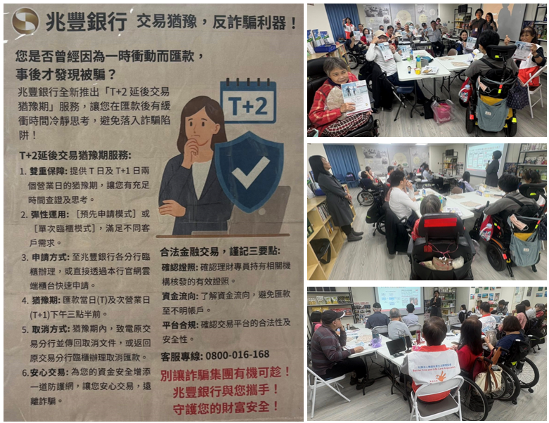 ✨1/28下午為強化會員對金融安全與生活規劃的認識,協會請到 #兆豐銀行 理財行銷主管蒞臨現場,為會員進行 #防詐騙宣導 及 #安養信託說明📢作為官股銀行,兆豐銀行秉持企業社會責任,主動走入社群,向大眾宣導「荷包守護、老有所托、安心退休」的重要觀念。透過實際案例分享,說明常見金融詐騙風險,提醒會員提高警覺,同時也介紹安養信託在生活規劃中的角色,提供會員提前做好資產與生活保障的安排方式🧐透過信託機制,確保退休後生活費用與照顧需求能被妥善管理。會員理解提早規劃的重要性,很多人對未來生活更有保障、更安心的信託方式很感興趣。