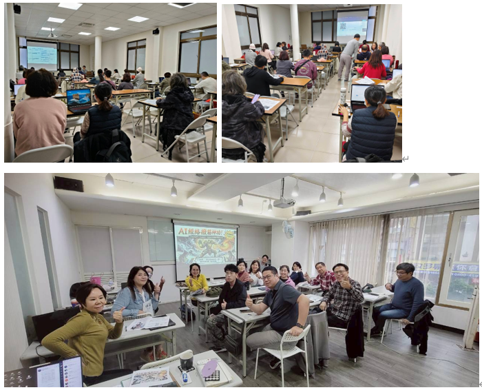 🌟課程後段進入學員演練與同儕雙向教學:學員彼此互相教學如何生成照片,再進一步讓靜態照片「動起來」💪在操作與分享中,學習不再只是個人吸收,而是形成良性的學習循環——教會他人,在一步步實作與互相教學中,學員們也更貼近「數位小老師」的角色定位 🌈。