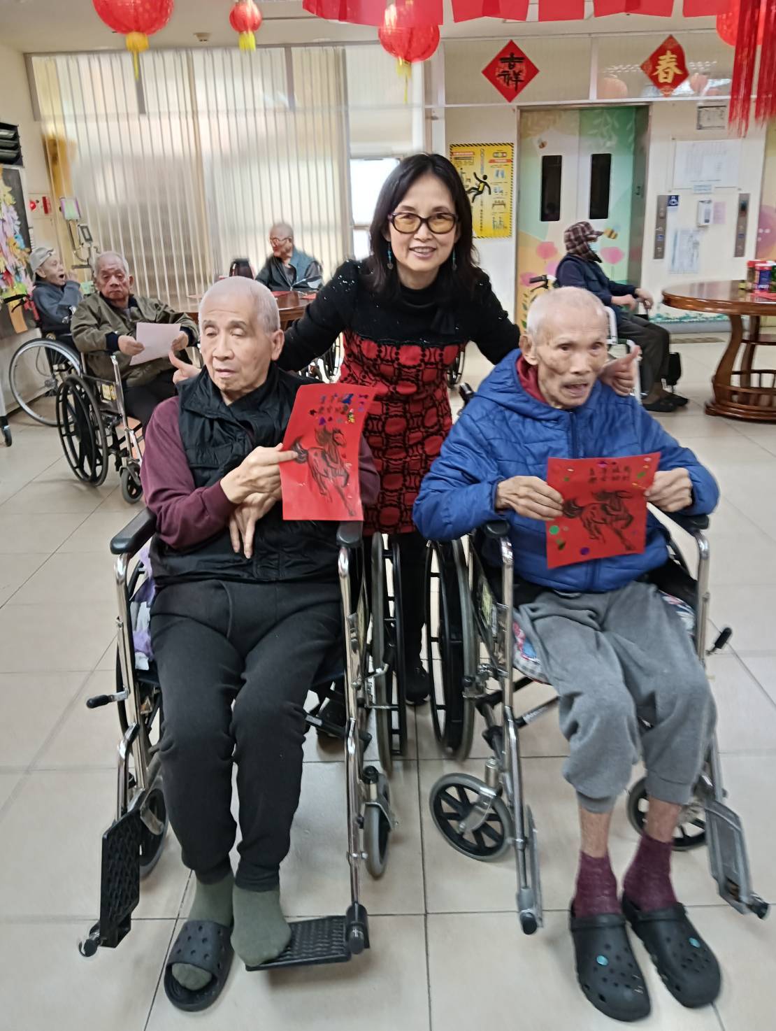 陪伴長輩們一起迎接馬年,畫下馬年平安喜樂和寫春聯,畫下月梅竹國畫,讓每位長輩們歡喜快樂迎新年。