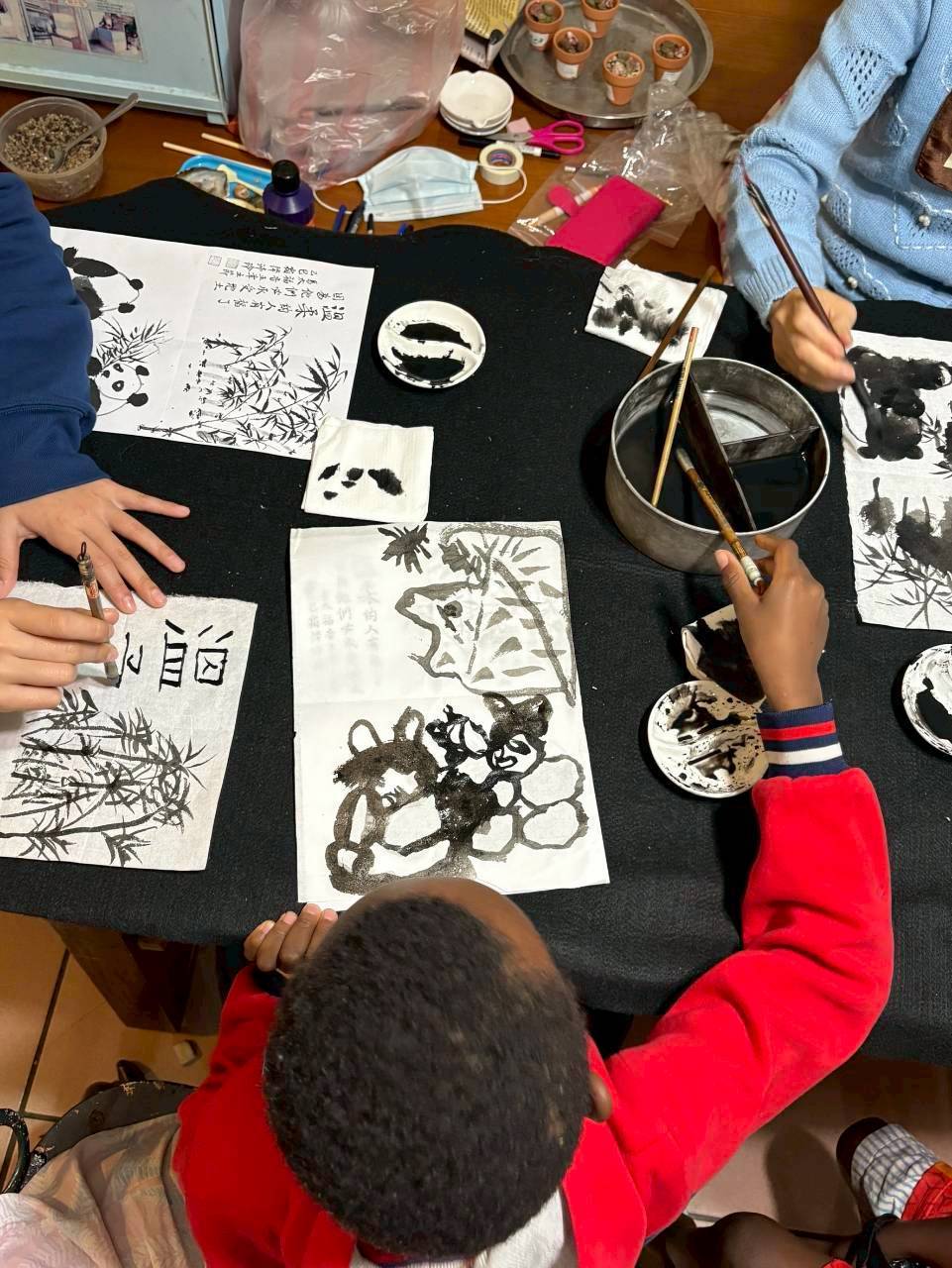 上圖說明: 鹽水創意春聯、書法課